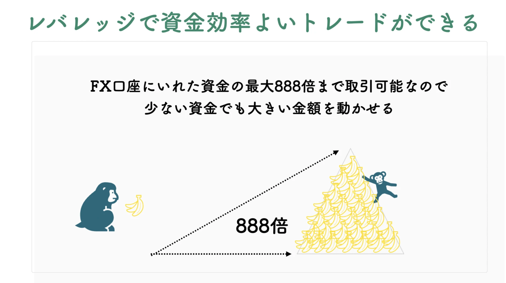 レバレッジをかけることで自己資金よりも大きい金額を動かして取引することができます。