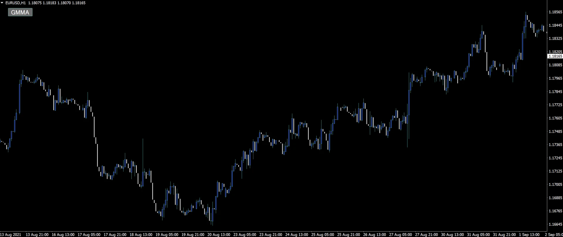 インジケーターを導入するとボタン付きのGMMAが表示されます。GMMAと記載された右上のボタンをおすとGMMAを非表示にすることができます。GMMAはパラメーターが固定で決まっているため、特にパラメーターをいじる必要はありません。