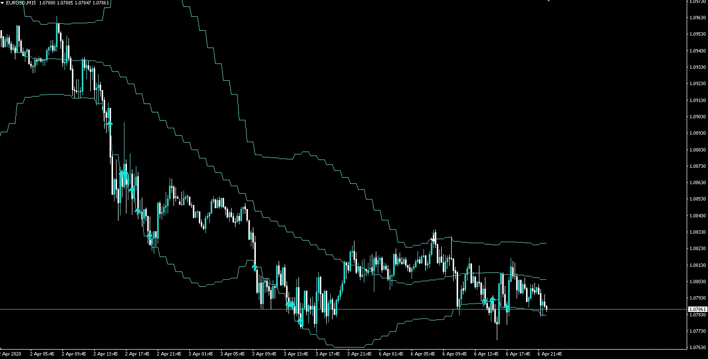 デフォルトのインジケーターにはない、トレンド系のボリンジャーバンドのインジケーターです。サイトの下部にある「オススメのインジケーター集」に記載してるので是非ダウンロードしてみてください。