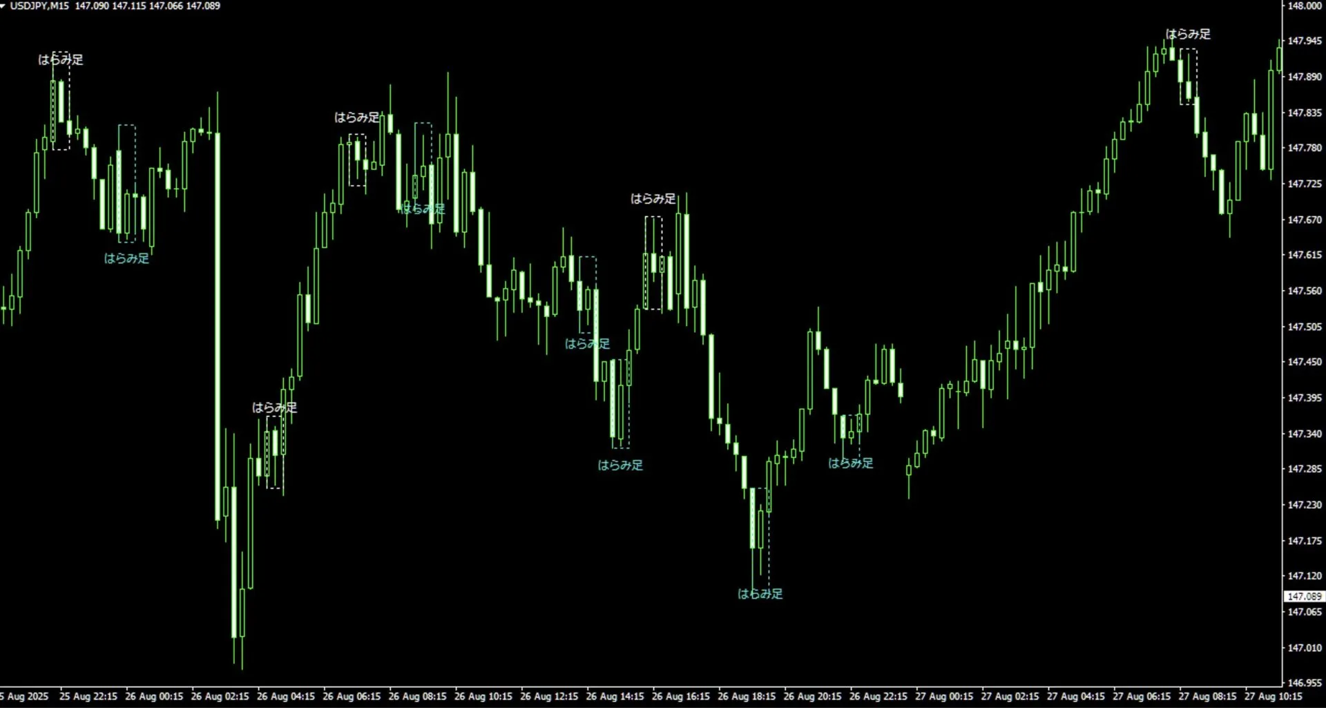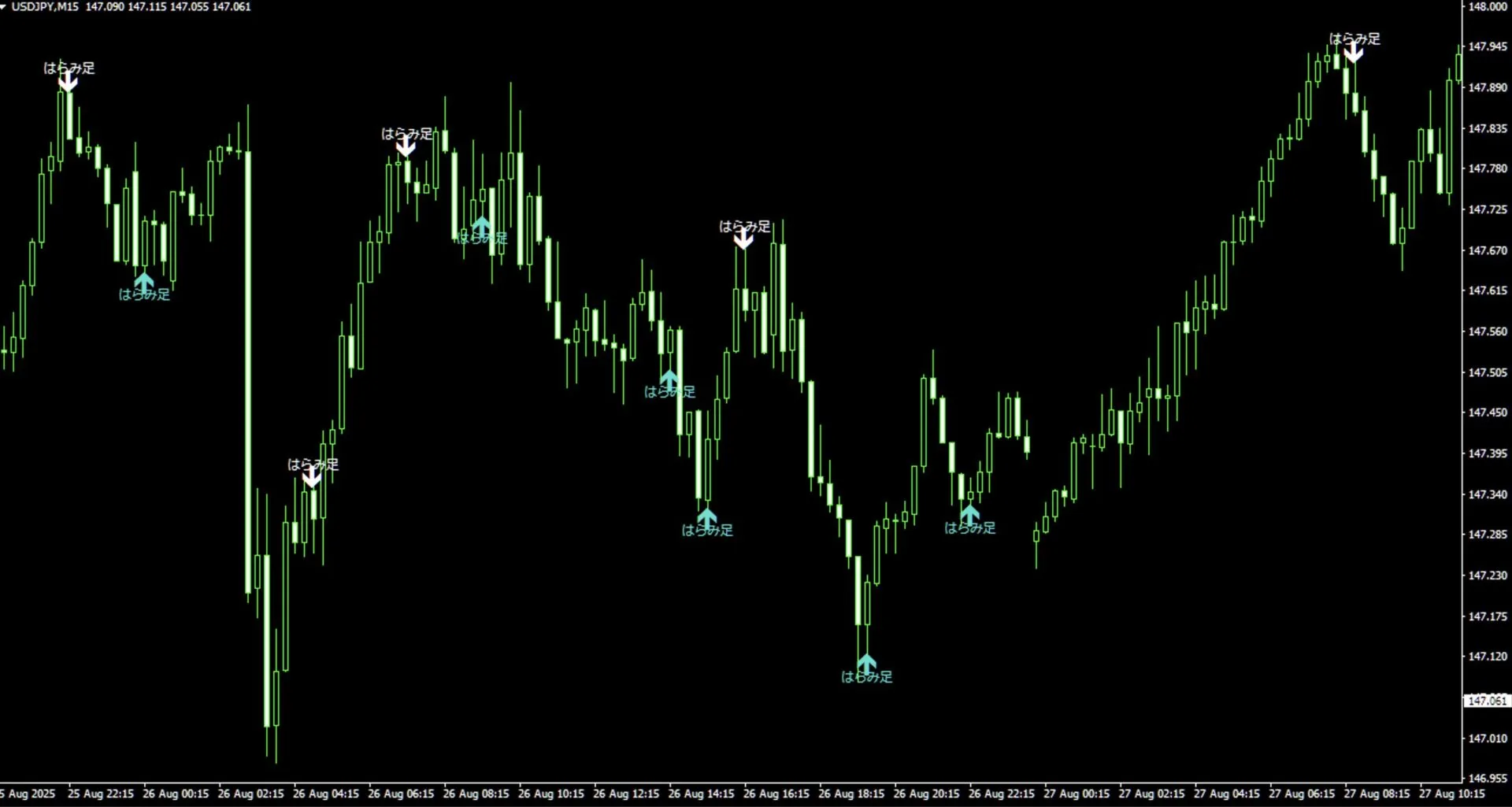 (はらみ足=弱いプライスアクション ) - はらみ足発生でアラートが鳴る