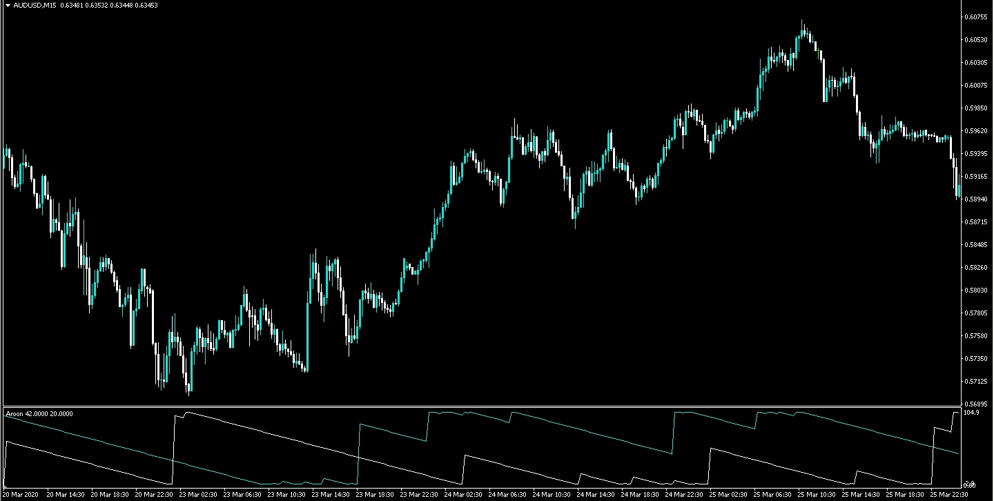 アルーンは、高値更新率を見る「アルーンアップ」と安値更新率を見る「アルーンダウン」の2つのテクニカル指標が1つのセットになったインジケーターです。