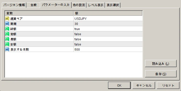 ▷FX業者(MT4業者)によって「USDJPY-a」といったように通貨ペア名が一部特殊な場合があります。その時にはパラメーターでその業者の通貨ペアを正しく打ち込む必要があります。