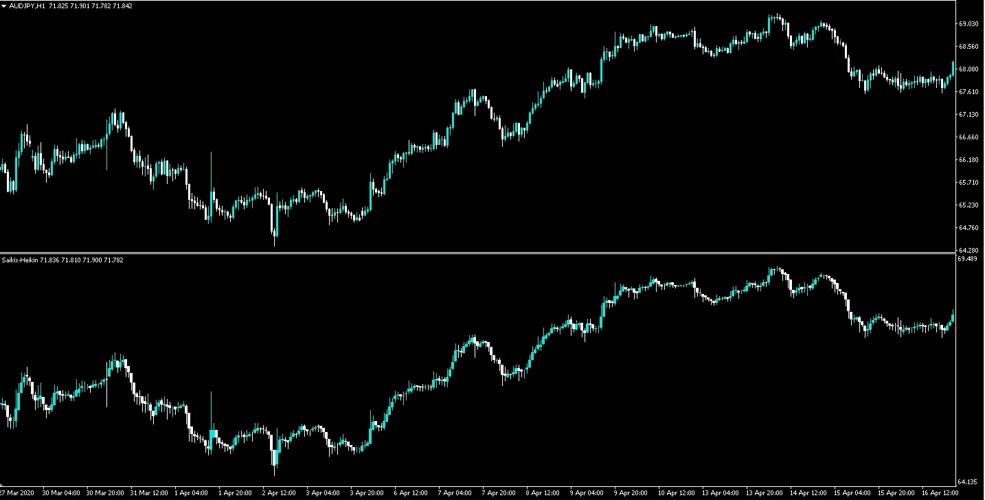 平均足(平均足)とは、前足の始値と終値の平均と現在の4本値(始値、高値、安値、終値)の平均によって実体が形成されるテクニカル指標。