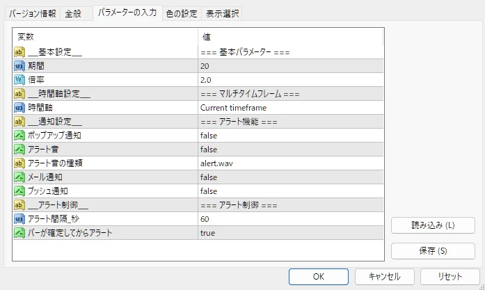 - バーが確定してからアラート (デフォルト: true)...true: バー確定後にアラート(だまし回避)/false: リアルタイムでアラート