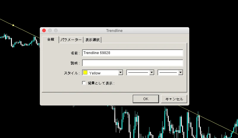 Saikix-LINE.ex4は、デフォルトでもお使いいただけますが、色とスタイル、太さなどのビジュアルに関する部分をご自身で選択頂けるようになっています。