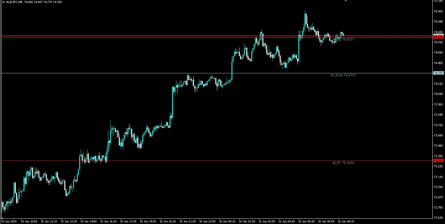 デイリーピボット、ウィークリーピボット、マンスリーピボットの3つの主要なピボットを1分足から月足まで、どの時間軸でも表示することができます。