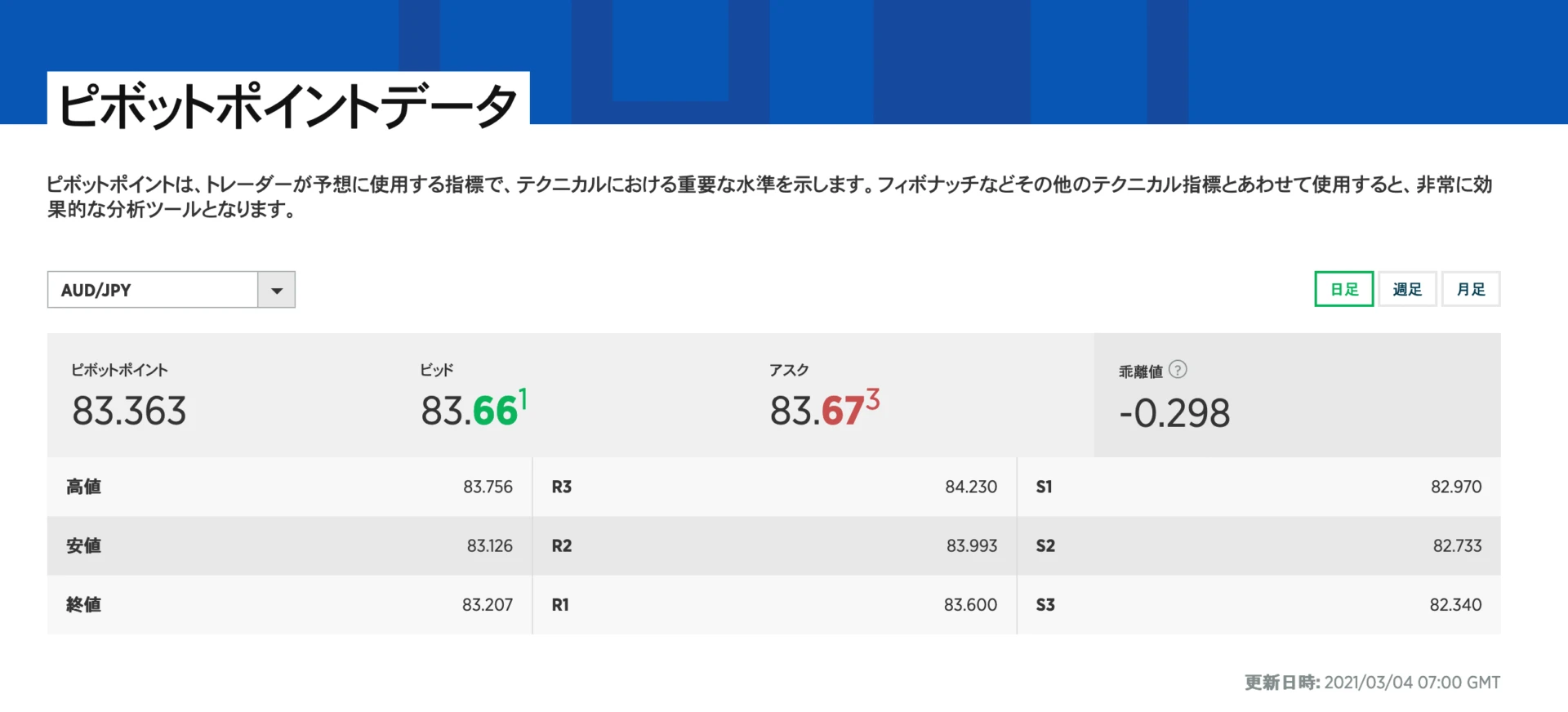 - 日足、週足、月足のPivotを表示できる
