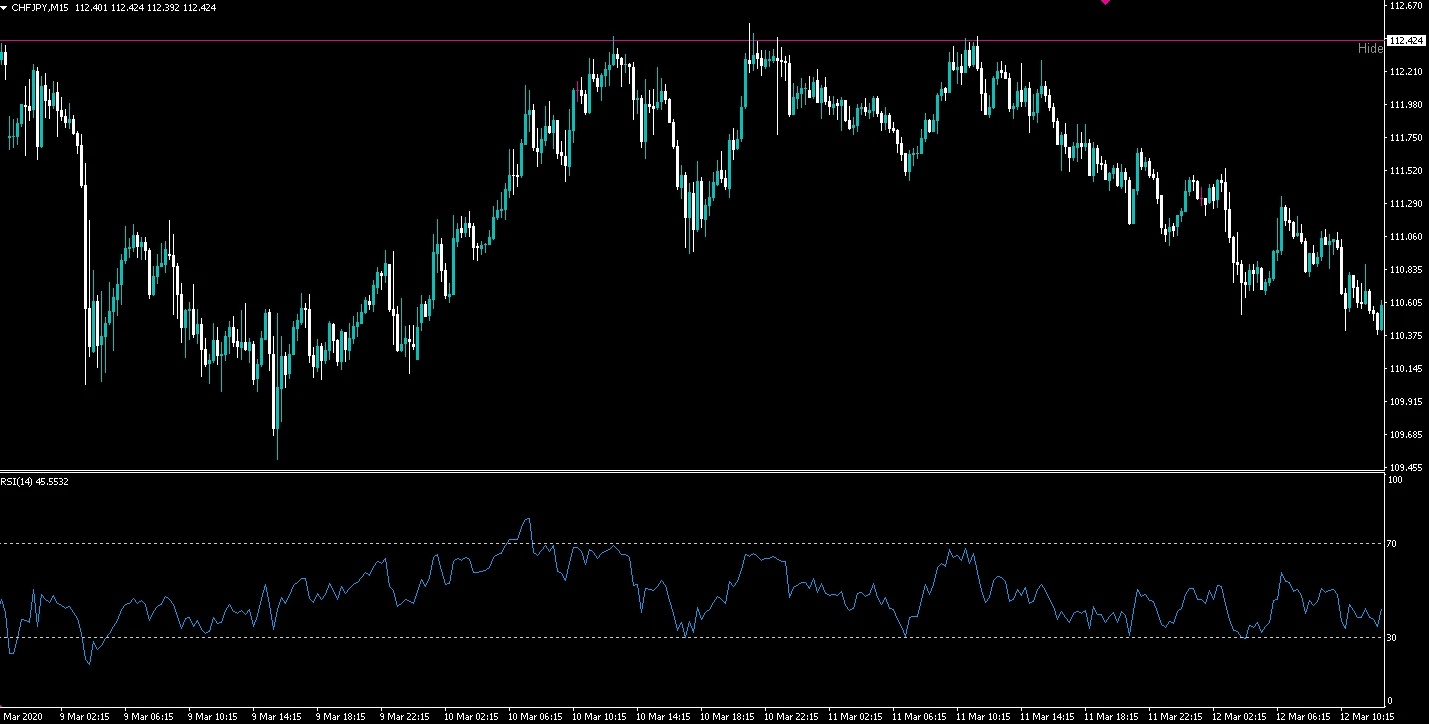 レンジ相場においては買われすぎ=今後下落する可能性が高いことを示唆する。 - RSIが30以下の場合は下降への勢いが強いことを表す。
