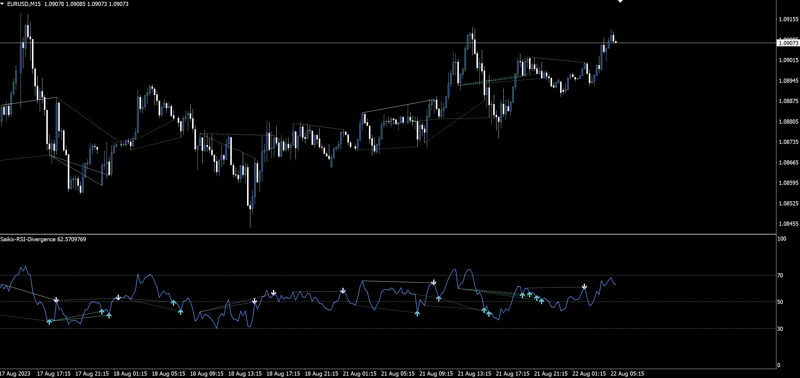 ダイバージェンスは実線、ヒドゥンダイバージェンスは点線で表示されます。