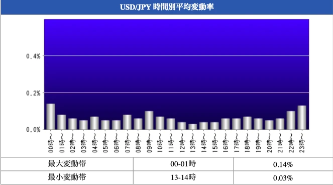 その中でもドル円、クロス円通貨ペアで一番ボラティリティが出やすい時間帯は9〜10時の1時間。