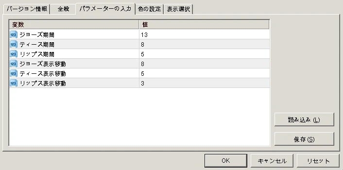 ジョーズ(長期):期間13の平滑移動平均を右に8本分ずらす