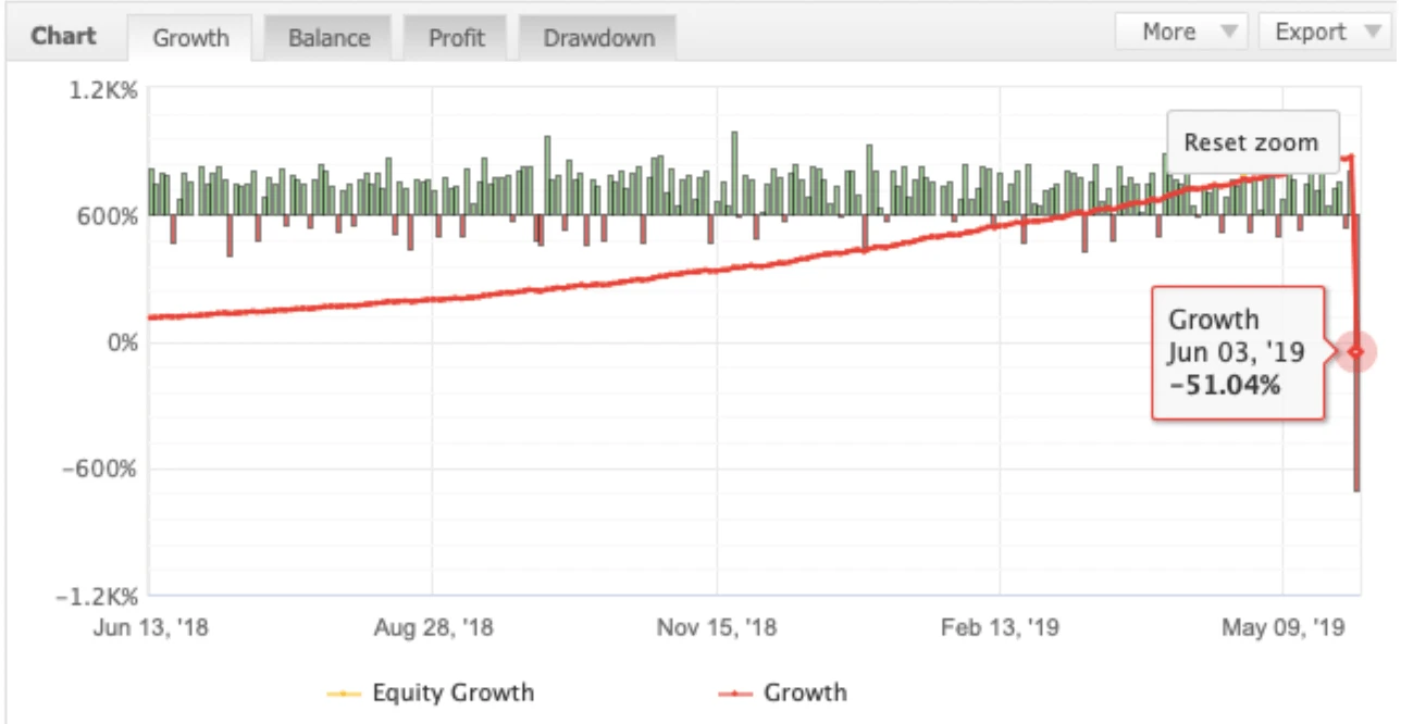 ですがマーチンゲールを続けている以上必ずいつか破綻します。