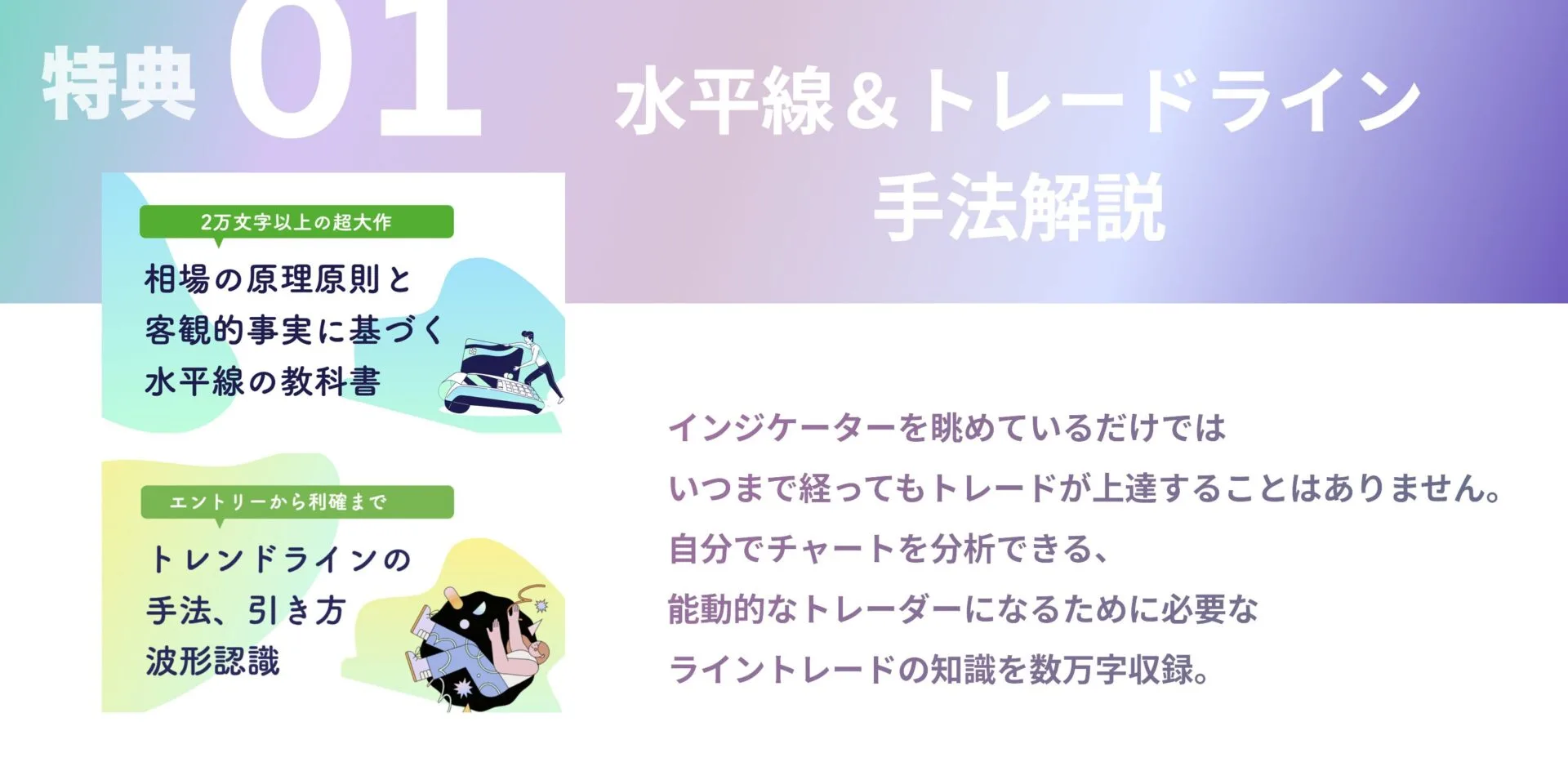 Benefit Ultraでは、水平線の引き方、トレンドラインの引き方、通貨ペアの選択方法までかなり詳しく解説している数万字の裁量コンテンツを学ぶことができます。