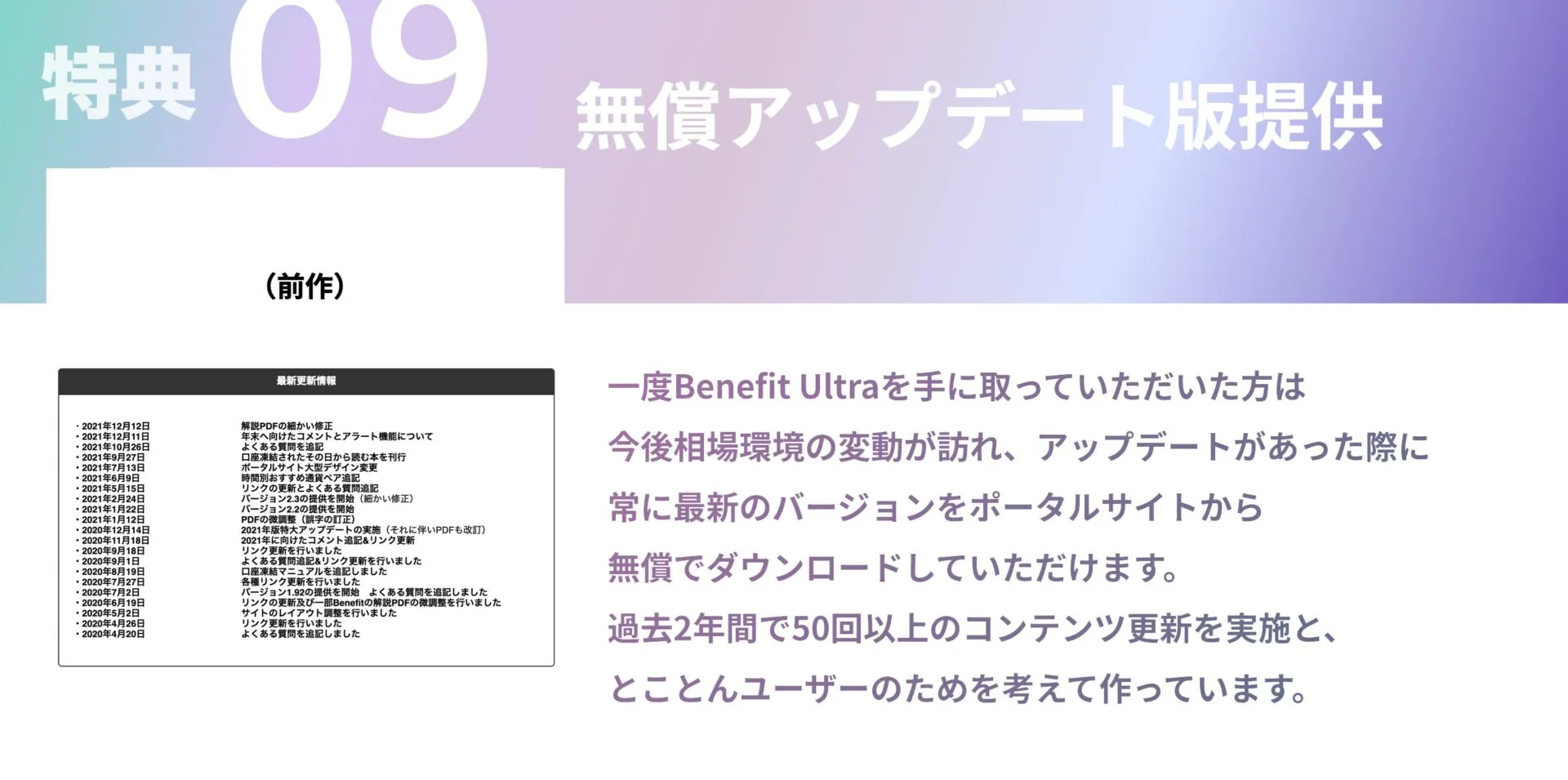 そこで、Benefit Ultraでは今日この瞬間から勝ち続ける投資家として