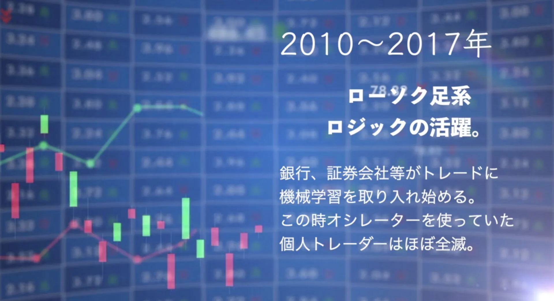 「聖杯はチャートの傾向と共に数年で大きく変化し、ある日突然、以前まで使えていたロジックが使い物にならなくなる。」