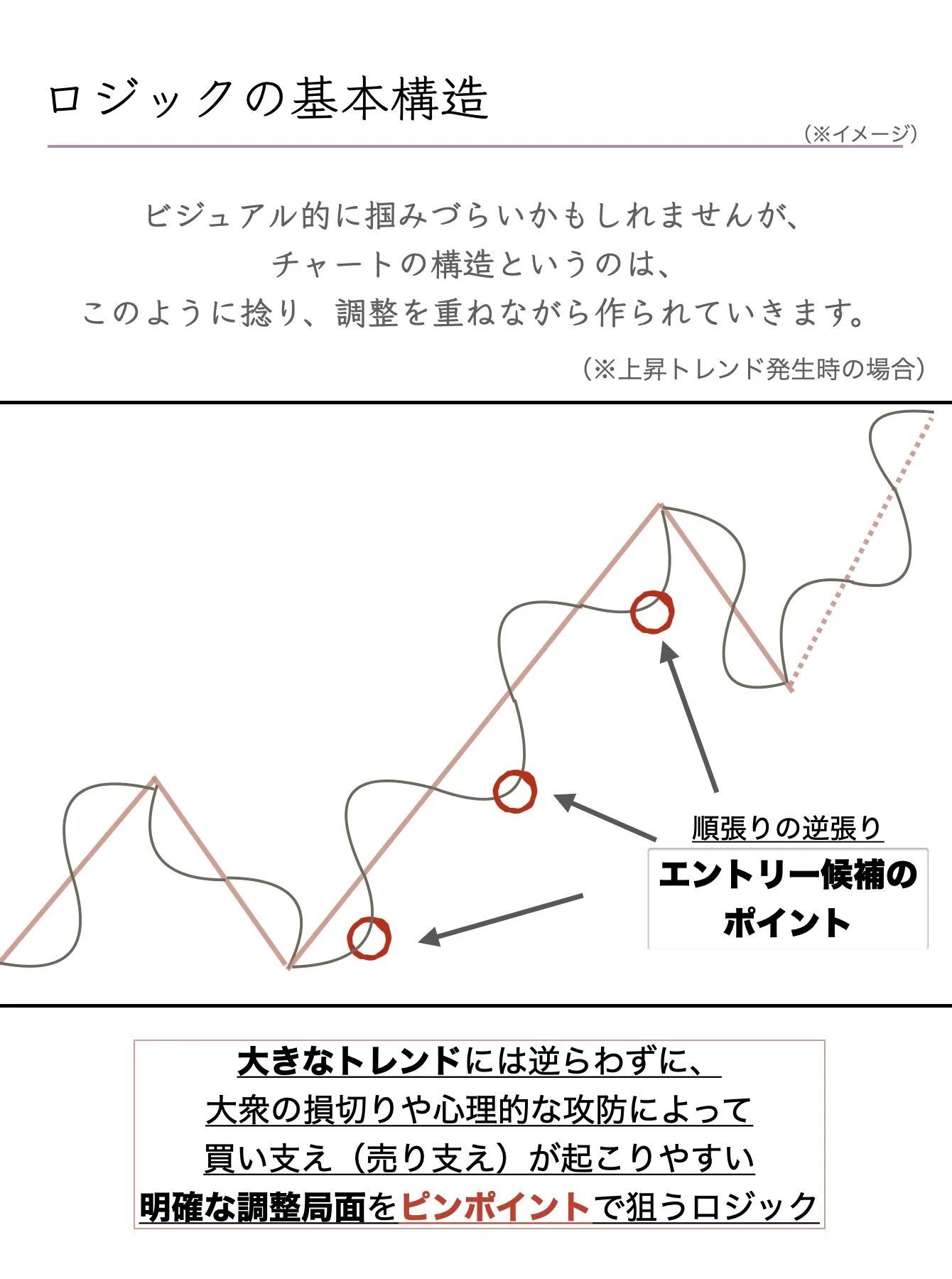 短期的な明確な調整局面を狙い撃ちする「順張りの逆張り」を狙うロジックです。