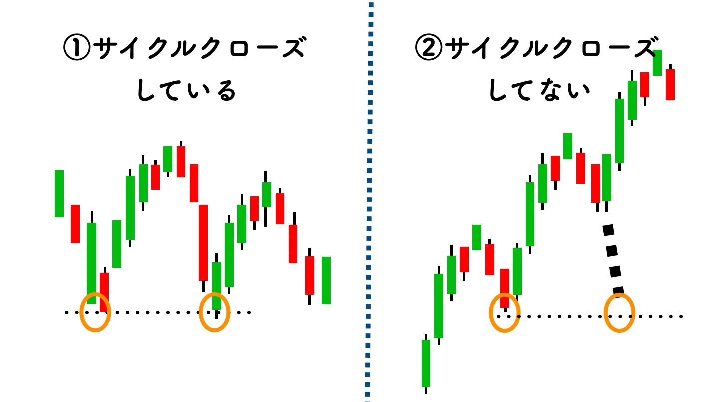 サイクルクローズの有無 サイクルクローズとは、サイクルの終点が始点の価格水準に戻ることを指します。