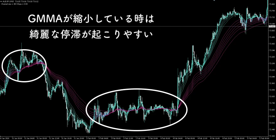 そんな中で最もGMMAの使い方として、初心者上級者問わずオススメできるのは、「GMMAをレンジ判断に使う方法」です。