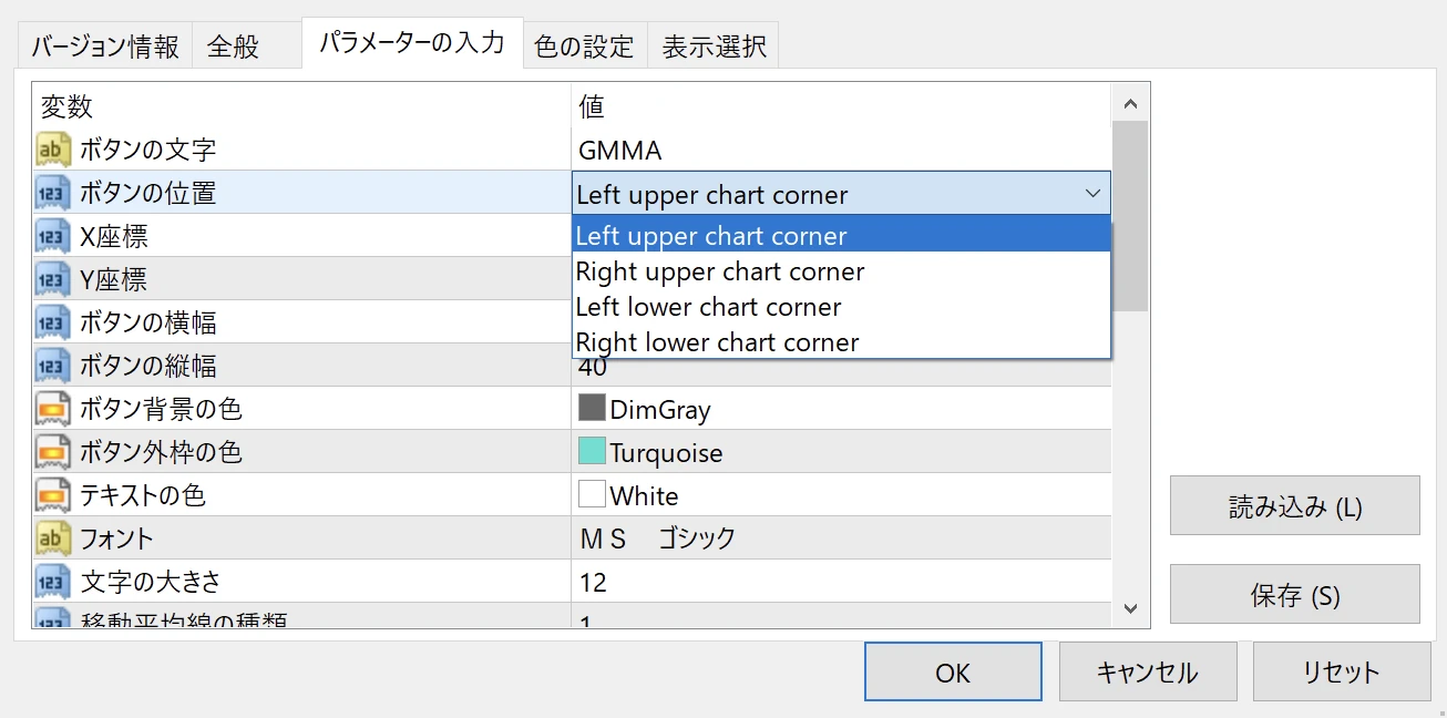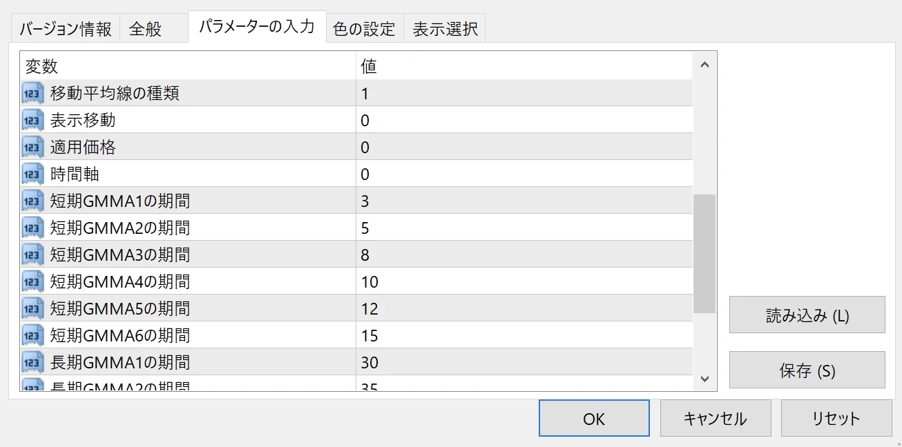 - 短期GMMAの期間...移動平均線のパラメーター