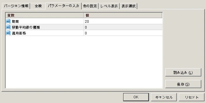 「0」...SMA(単純移動平均線)「1」...EMA(指数平滑移動平均)「2」...SMMA(平滑移動平均線) 「3」... LWMA(線形加重移動平均線)