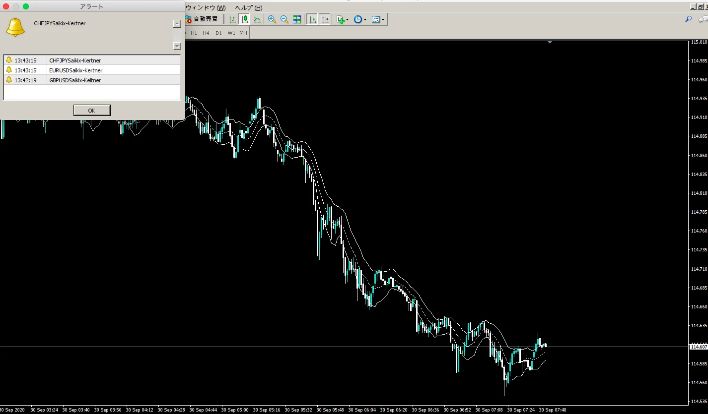 アラート搭載ケルトナーチャネルを無料配布【MT4インジケーター】