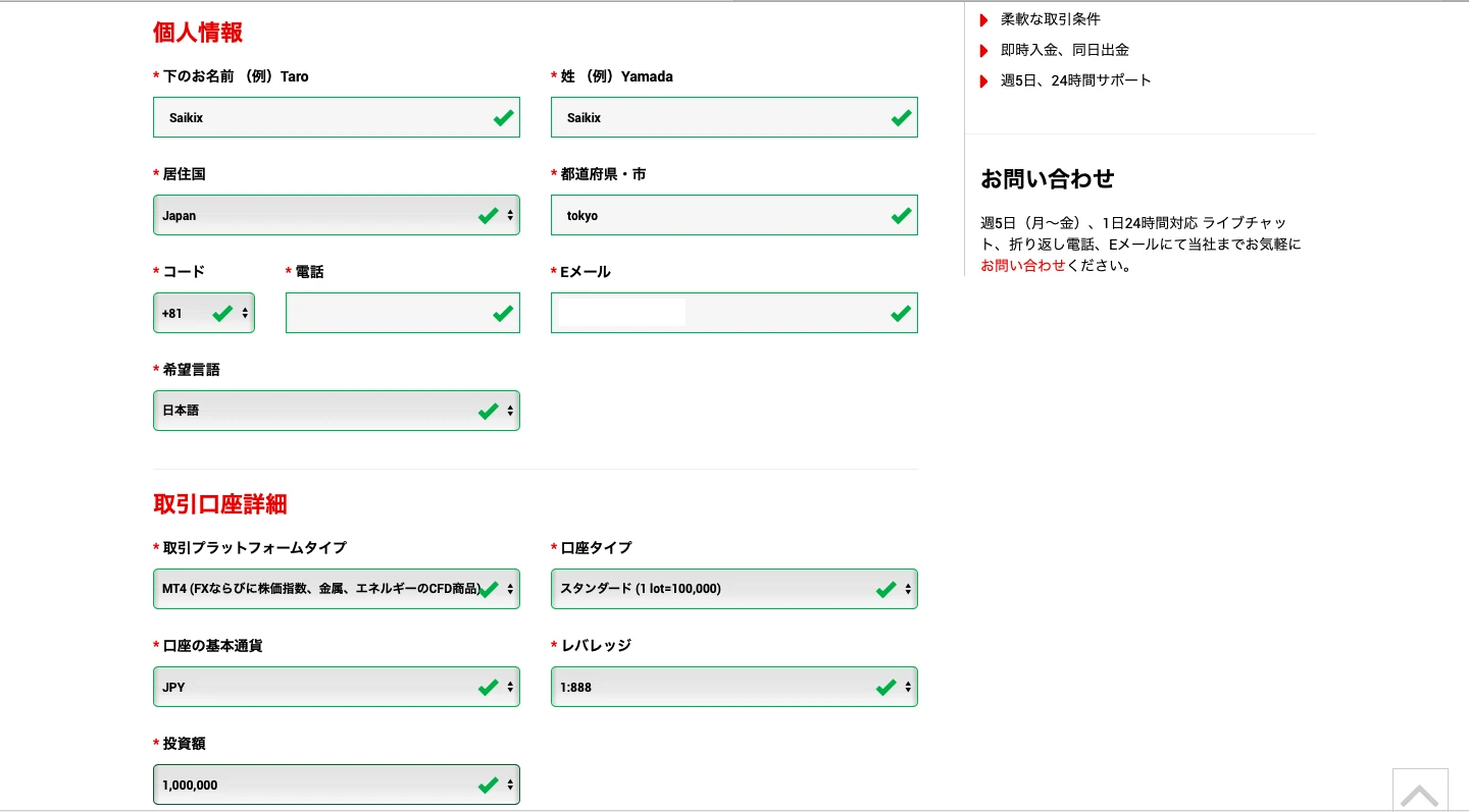 デモ口座で適当な情報をいれてアカウントを作ってください。