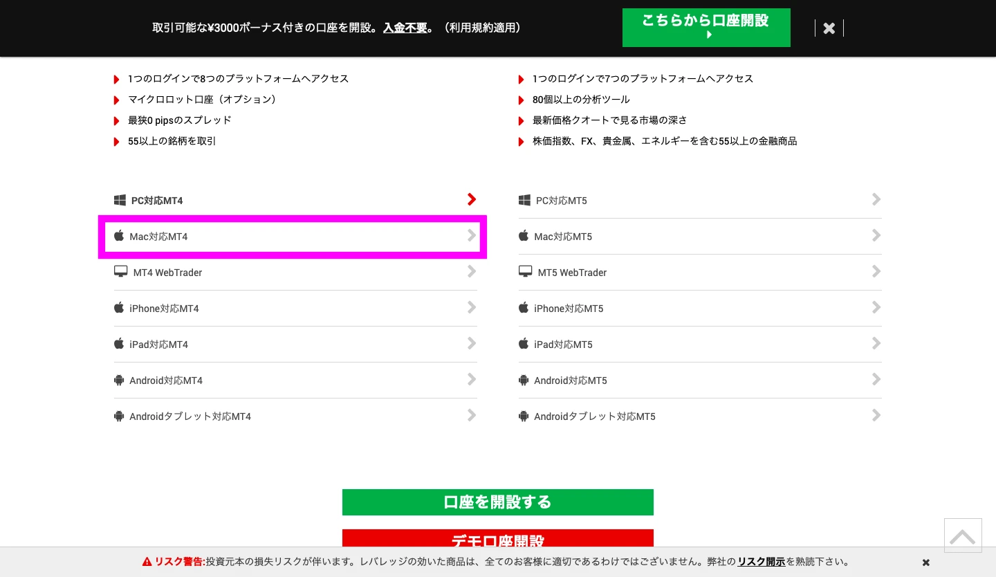 Mac対応MT4ソフトウェアのダウンロード方法