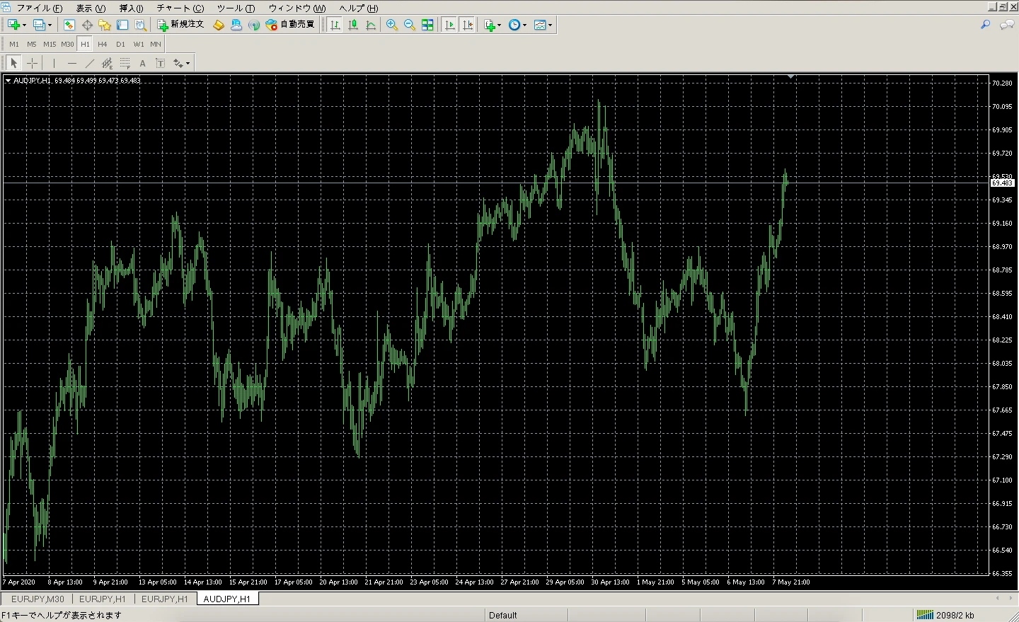 正直に言うと、Windows版と比べてMac版のMT4は動作が不安定です。急にフリーズしたり、起動してもチャートが表示されないことがたまにあります。そういう時はMT4を一度閉じてもう一度開けば大抵直ります。「Mac版はこういうものだ」と割り切って使うのがコツです。
