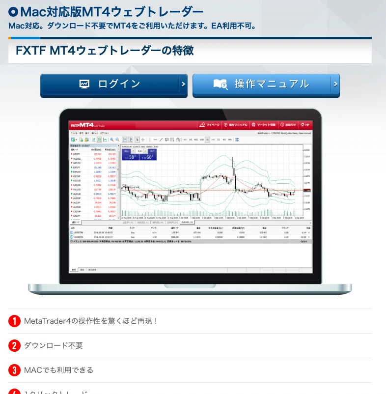 FX業者「FXTF」ではブラウザ版のMT4が利用できます