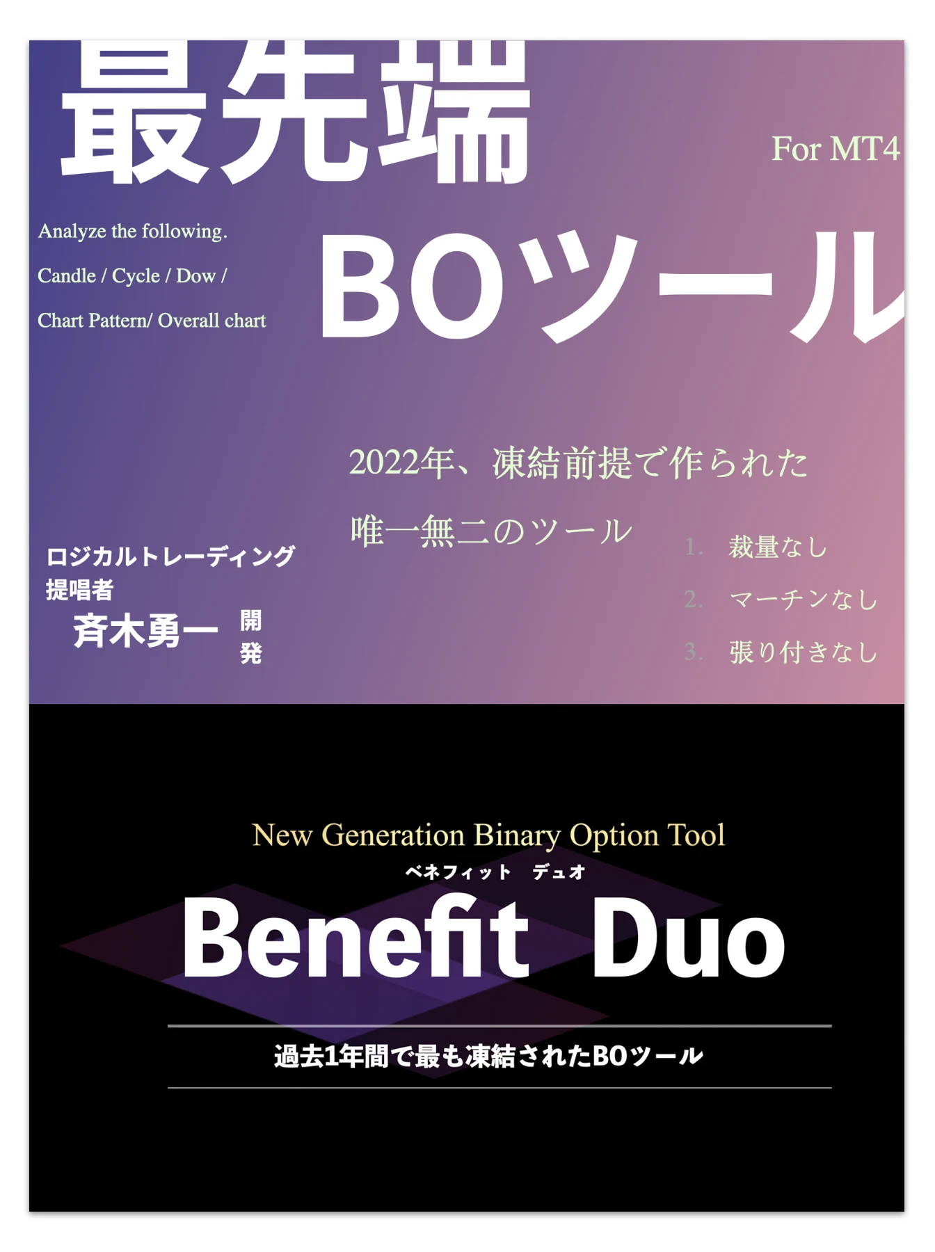 バイナリーツール、FXのEA、裁量講座がセットになったBenefit Ultra(専業投資家フルコース)を開発しました。既にBenefit Duoを既にお持ちの方への還元として、Benefit Duoの全額分を割引する「Duo割」をご用意しました。