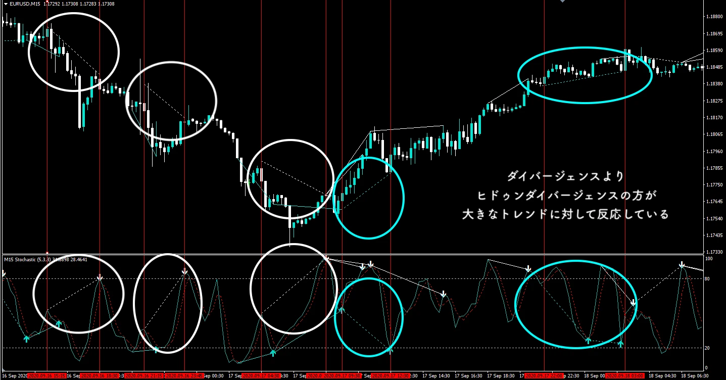 | ストキャスが不得意なこと | トレンドがいつ終わるかを予想する |