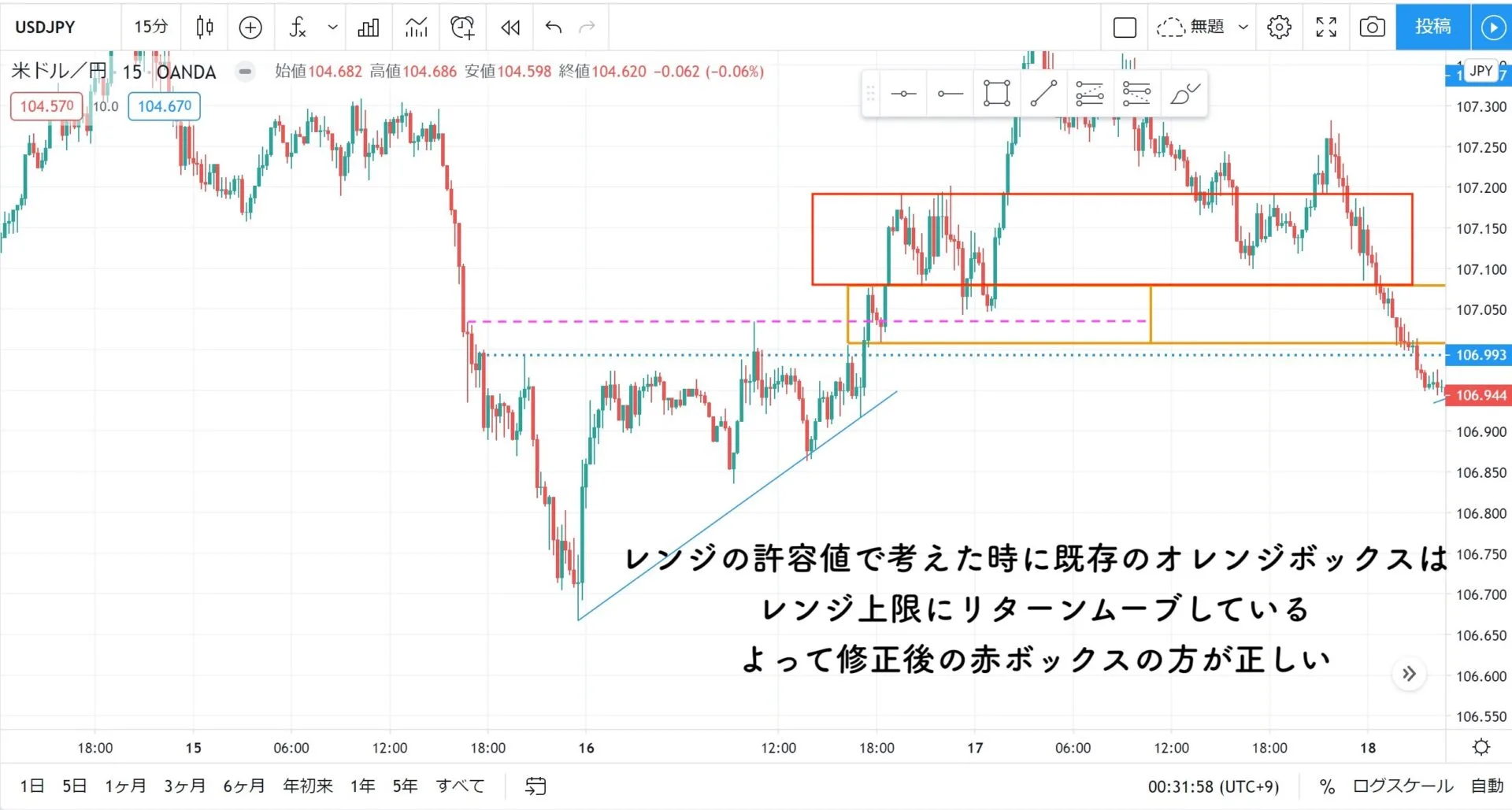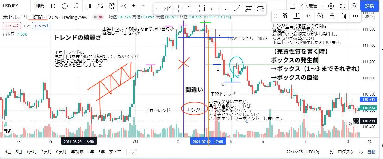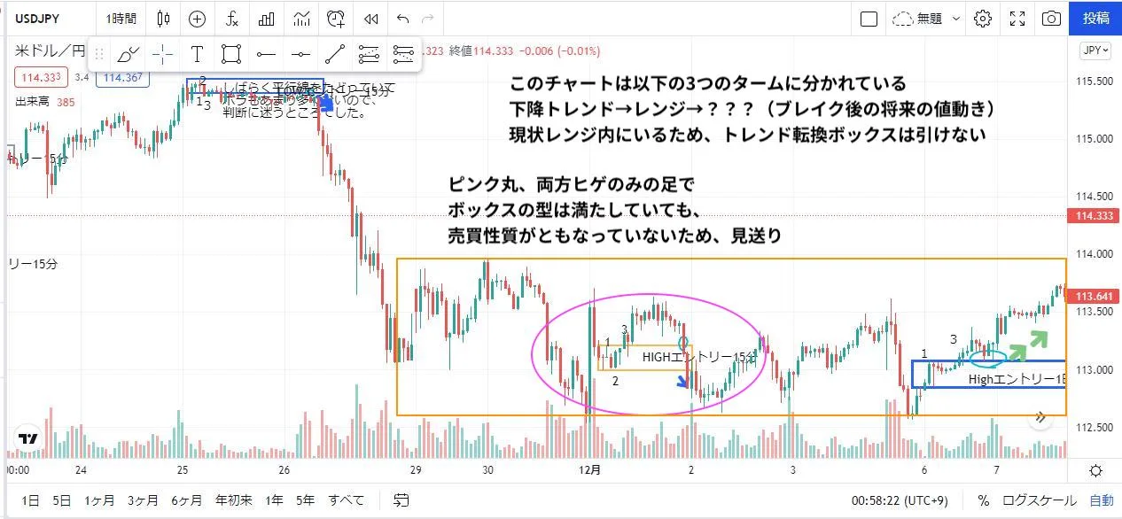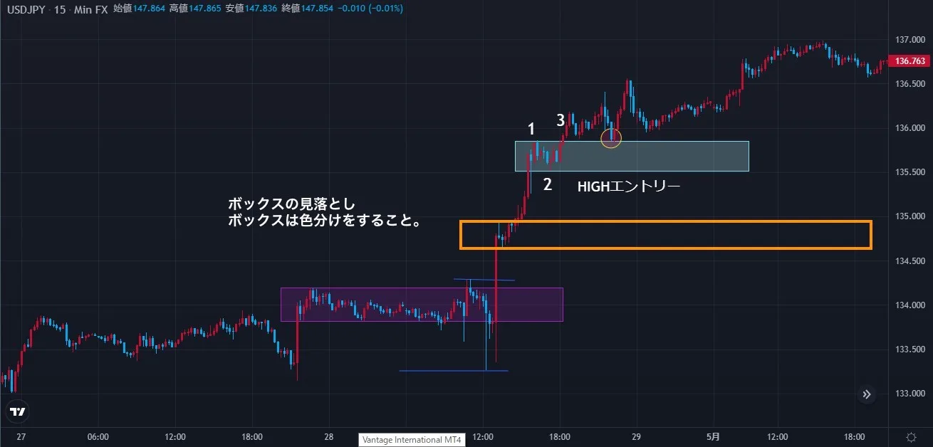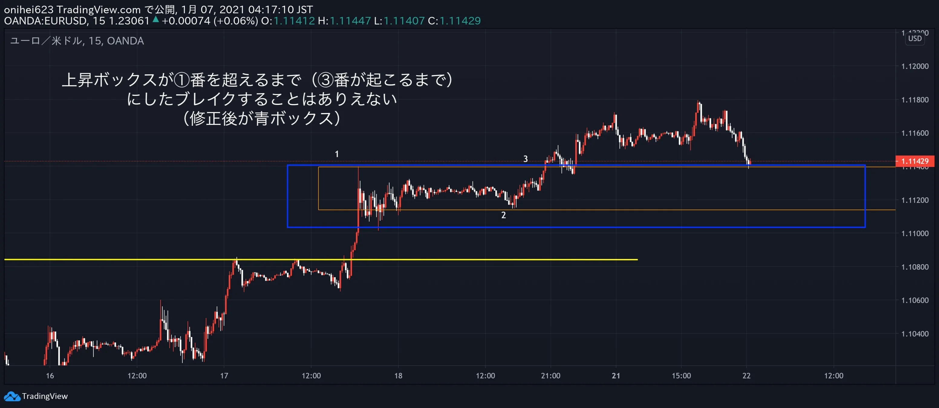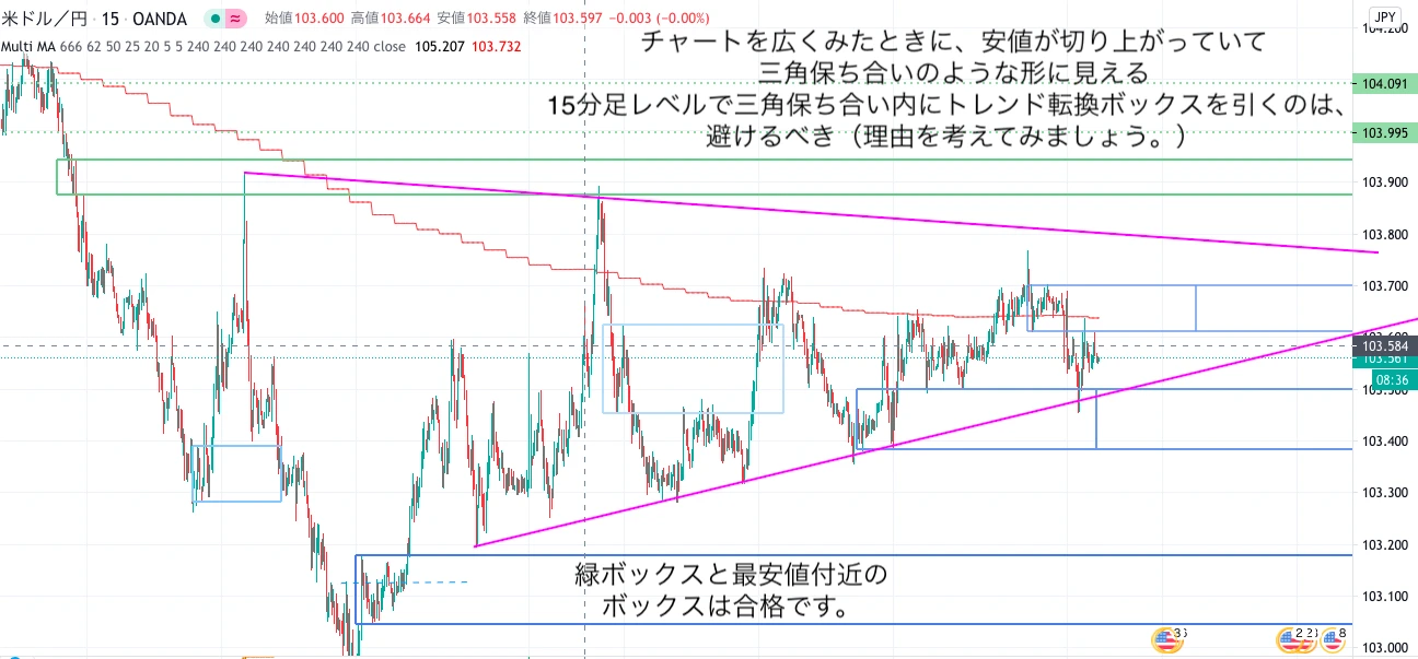 ボックス自体を見落としていたり、①→②の部分で前足の高値更新(買いボックスなら前足の安値更新)をしていないのにボックスを引いていたり、大抵のミスは簡単なミスで原因に気付いてあげればすぐに自分で直せるものです