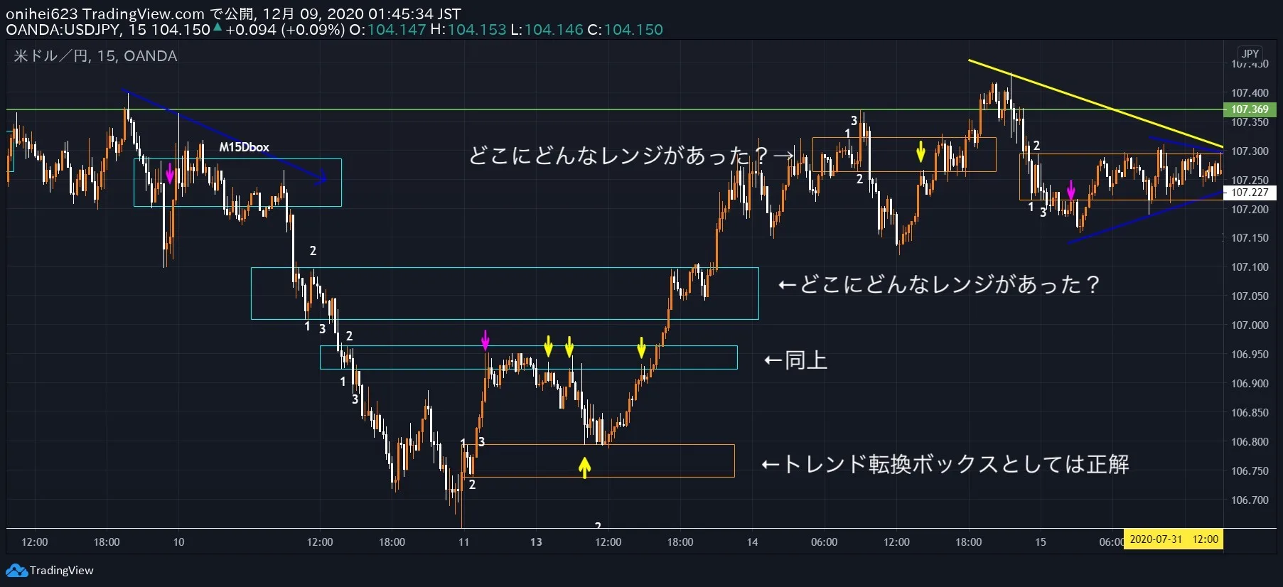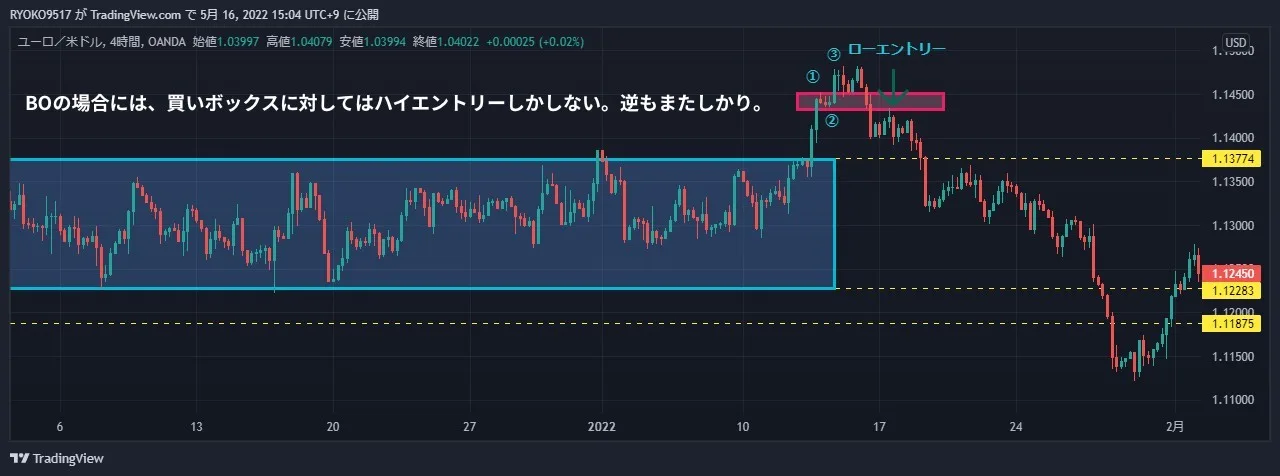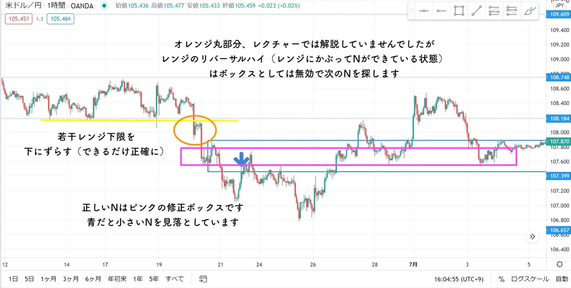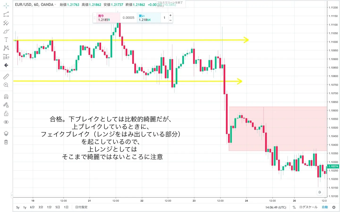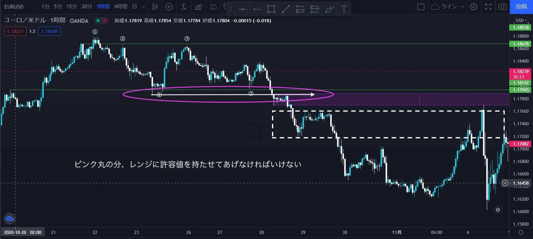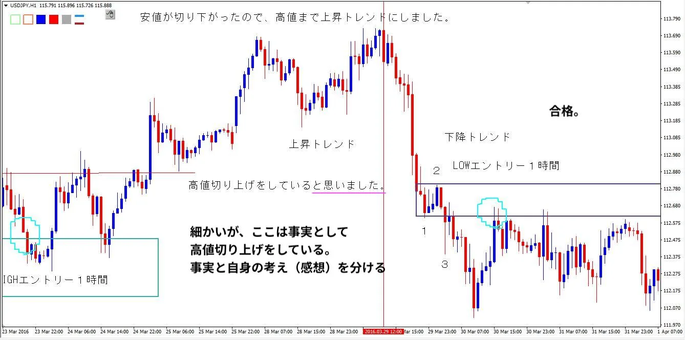 ボックス自体を見落としていたり、①→②の部分で前足の高値更新(買いボックスなら前足の安値更新)をしていないのにボックスを引いていたり、大抵のミスは簡単なミスで原因に気付いてあげればすぐに自分で直せるものです
