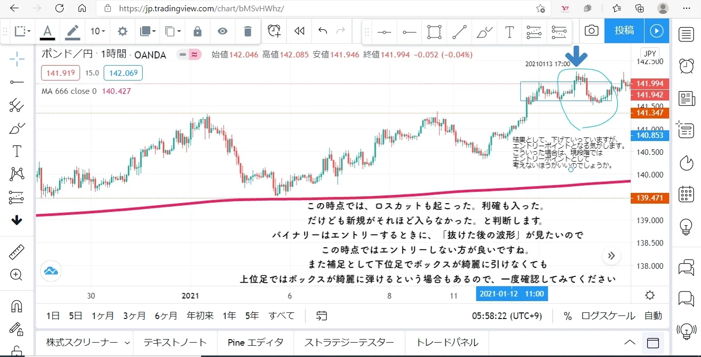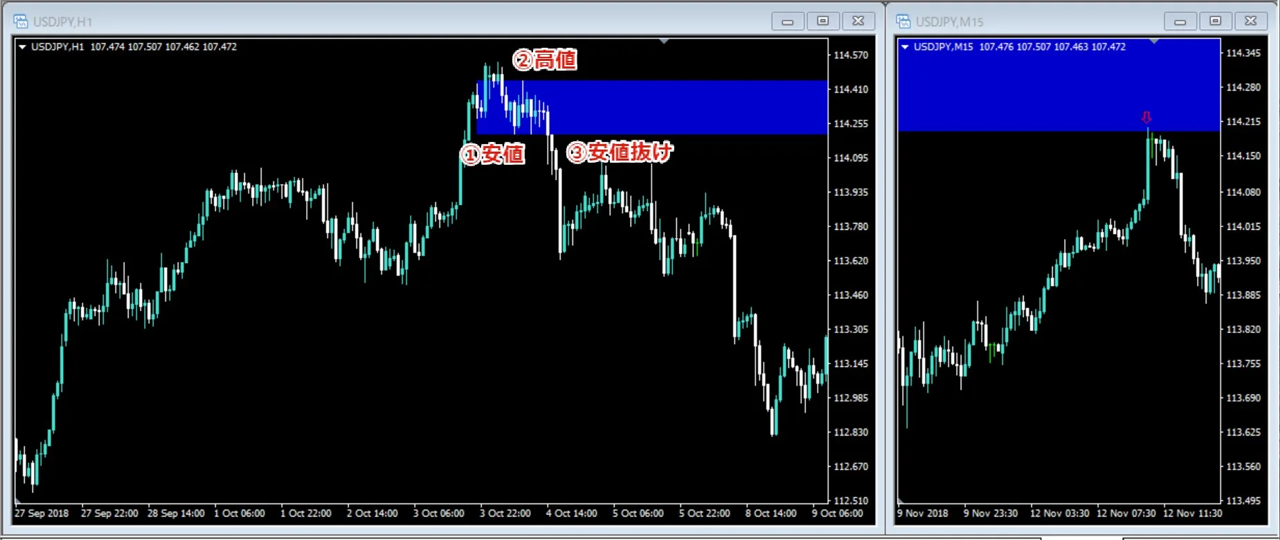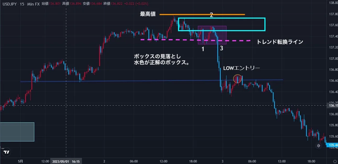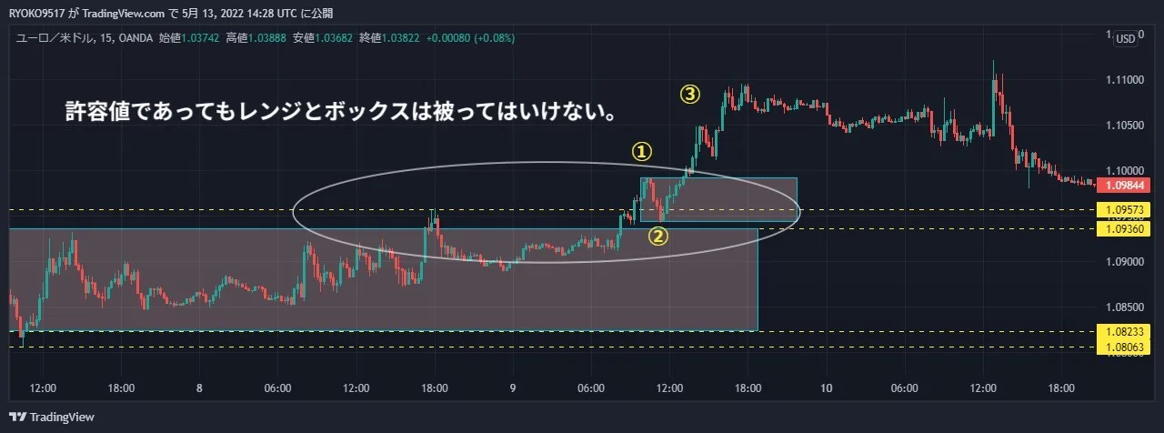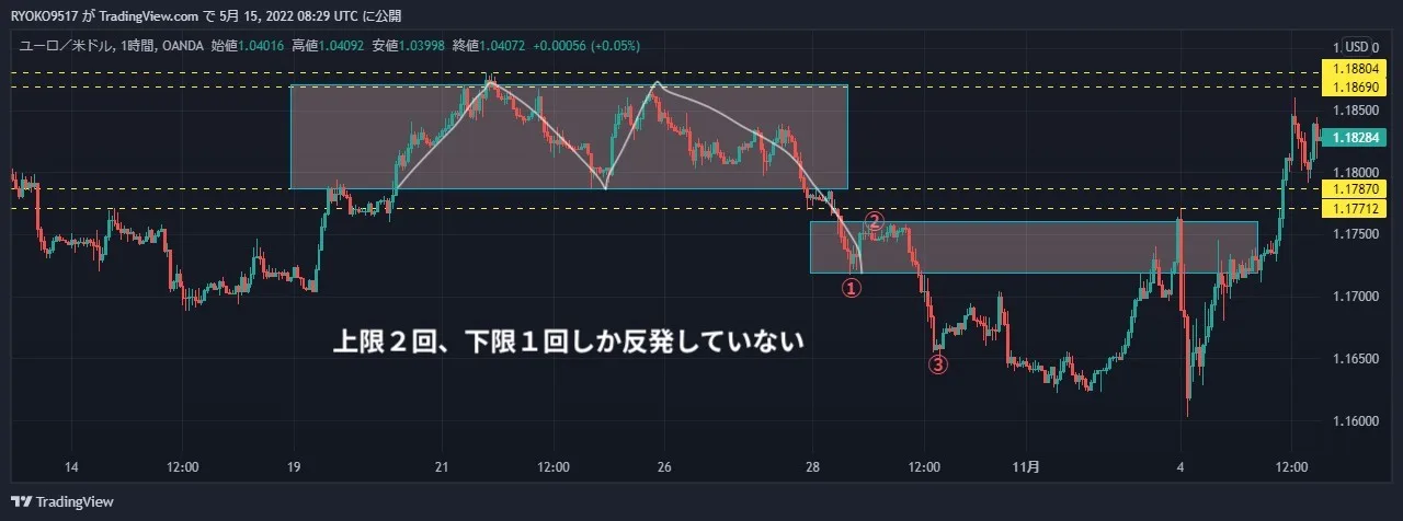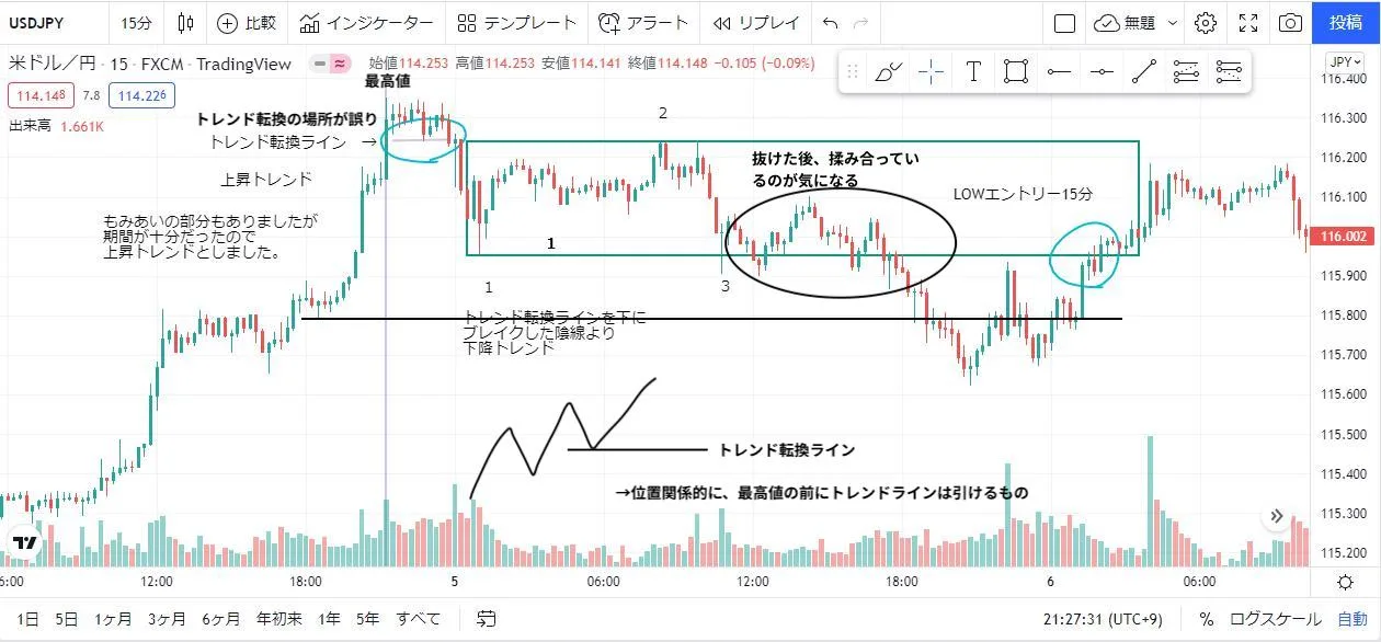 ボックス自体を見落としていたり、①→②の部分で前足の高値更新(買いボックスなら前足の安値更新)をしていないのにボックスを引いていたり、大抵のミスは簡単なミスで原因に気付いてあげればすぐに自分で直せるものです