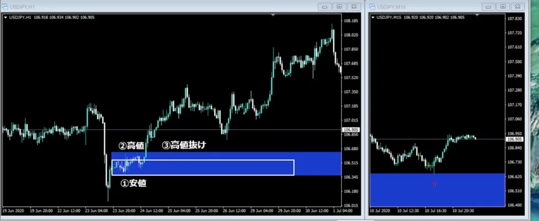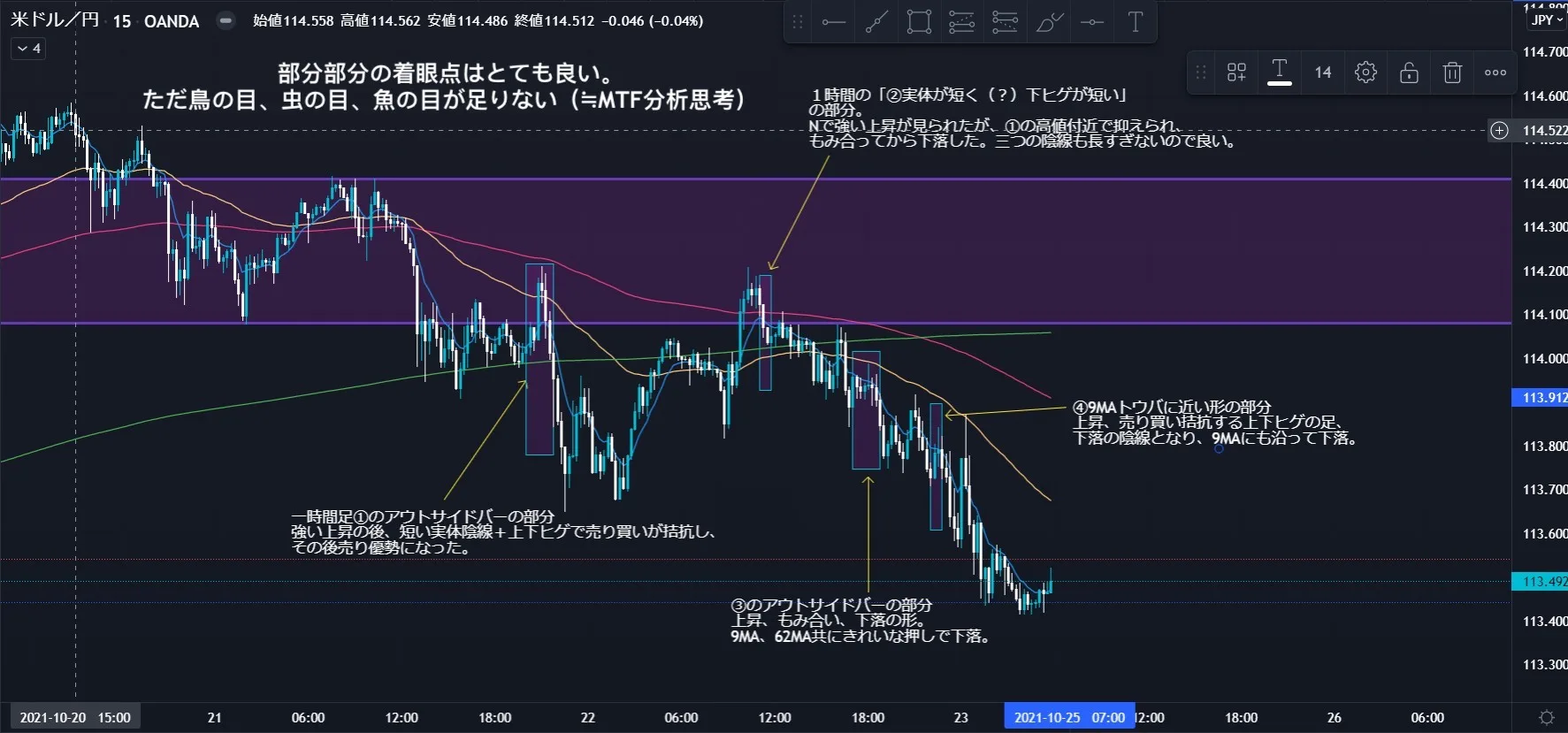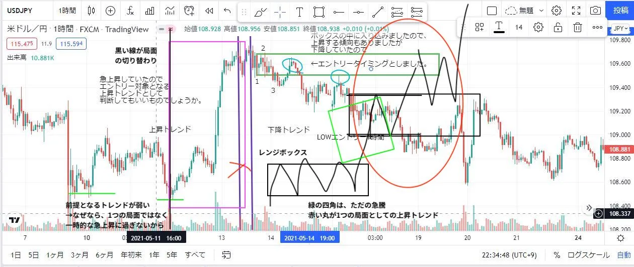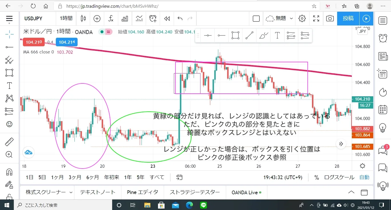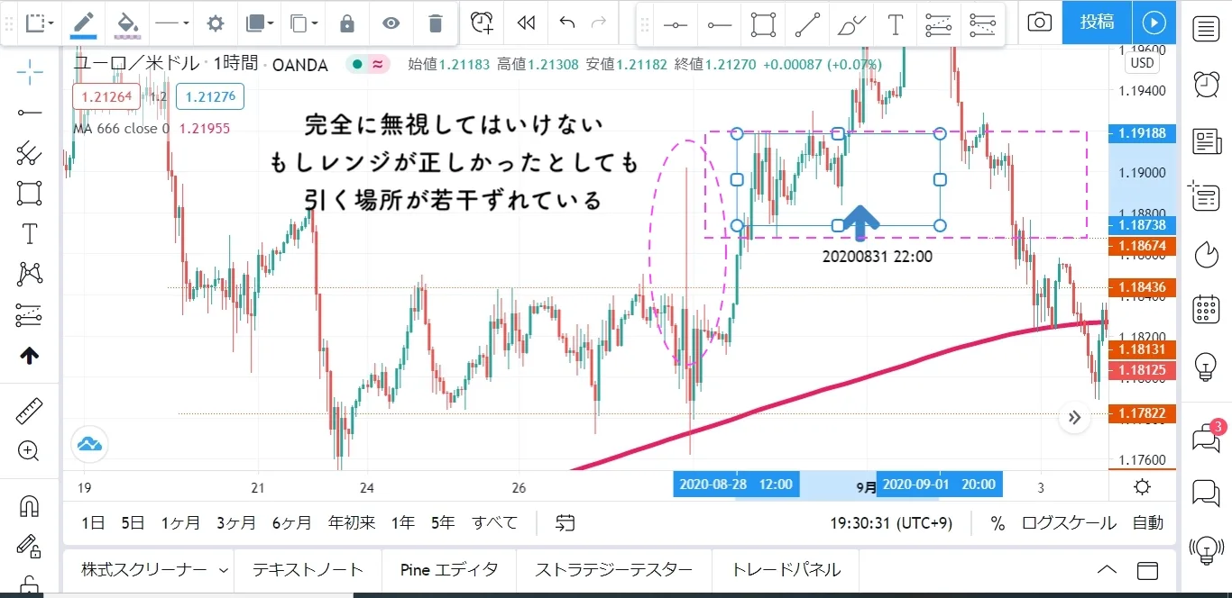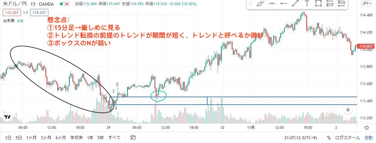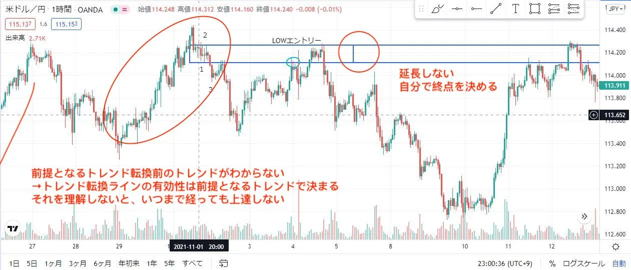 ボックス自体を見落としていたり、①→②の部分で前足の高値更新(買いボックスなら前足の安値更新)をしていないのにボックスを引いていたり、大抵のミスは簡単なミスで原因に気付いてあげればすぐに自分で直せるものです