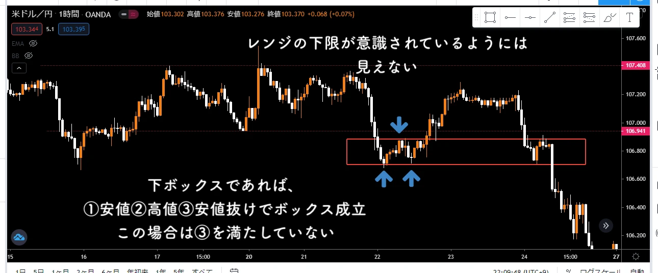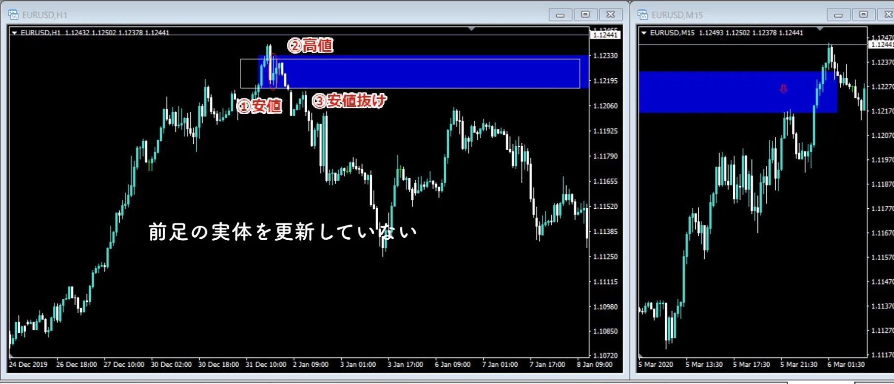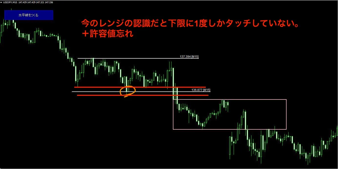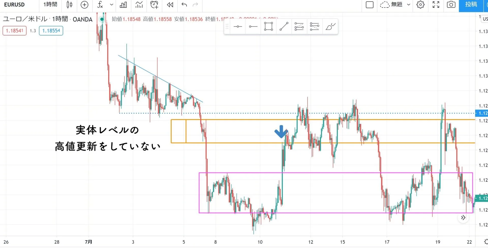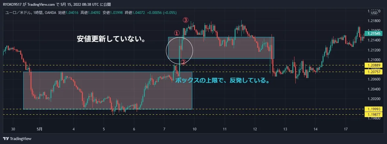 ボックスの成立要件ミス(②の実体レベル高値更新ミス)