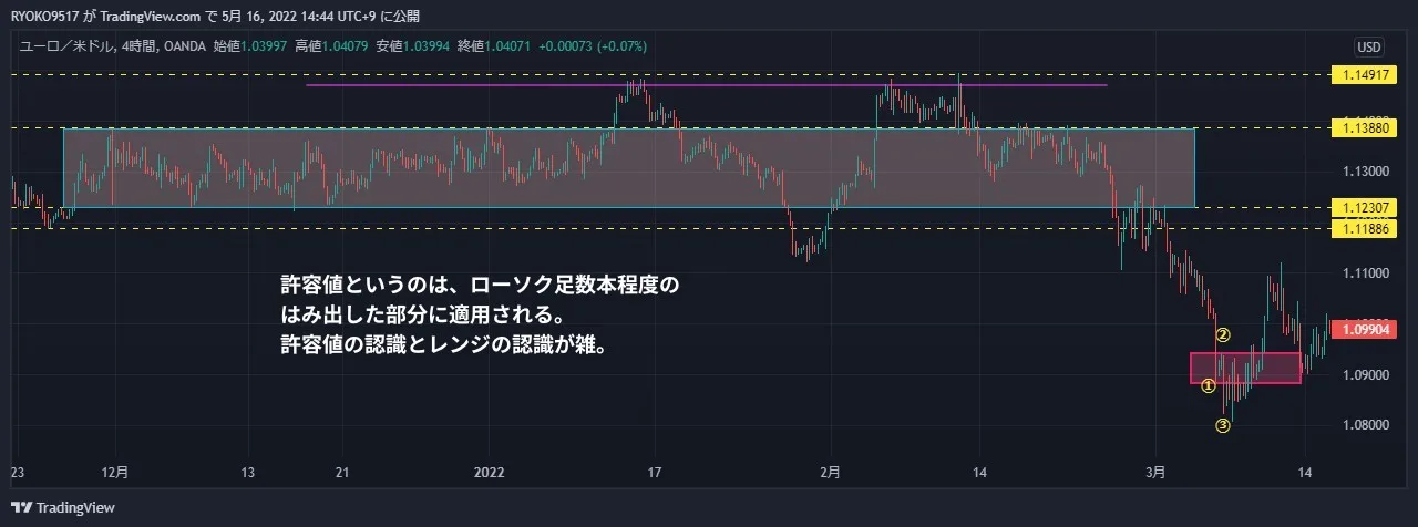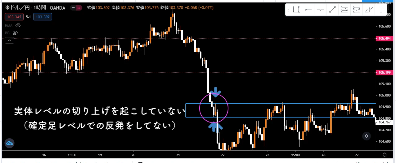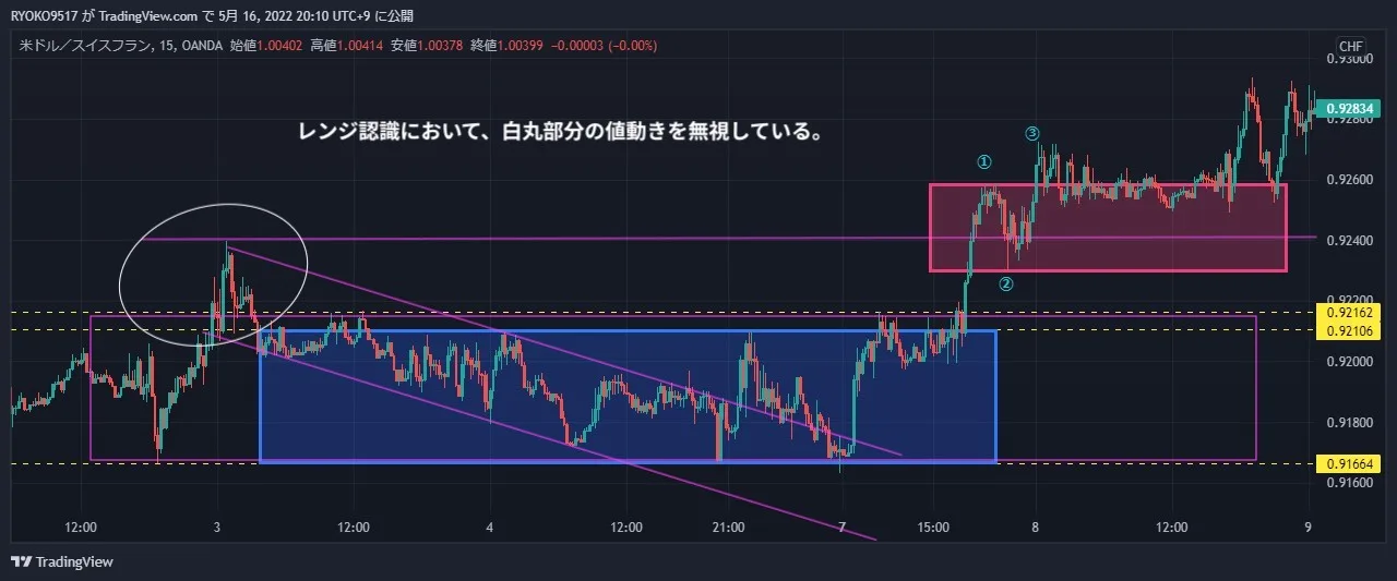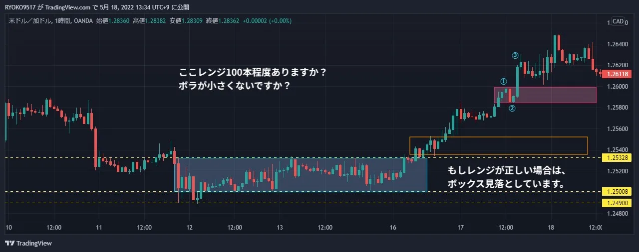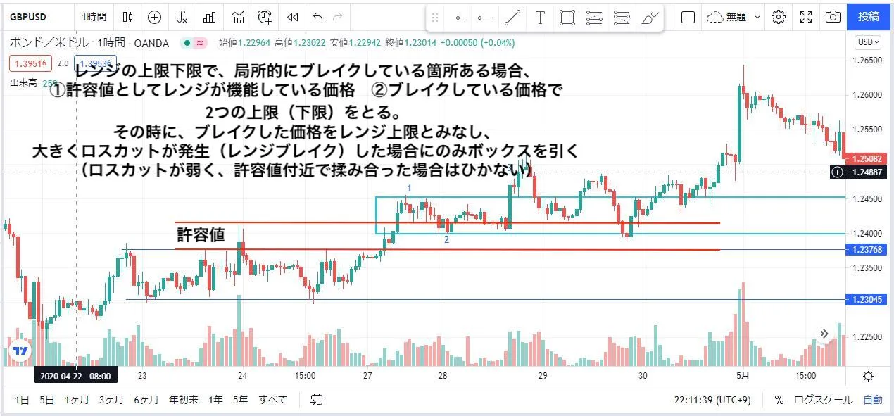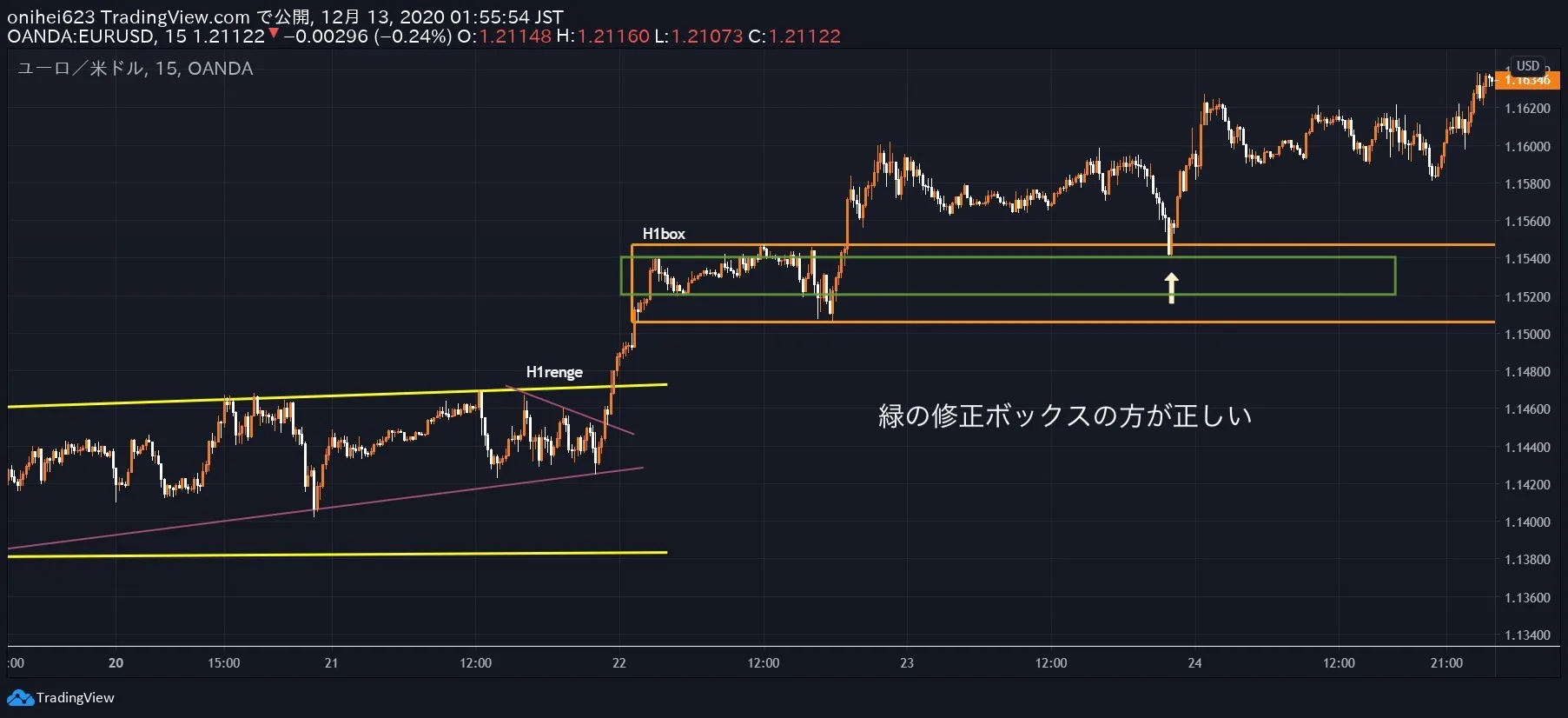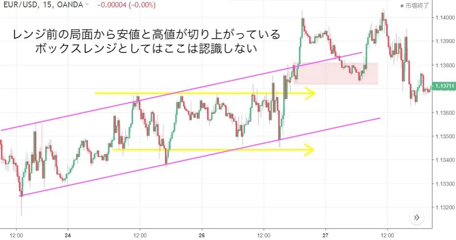 ボックスの成立要件ミス(②の実体レベル高値更新ミス)