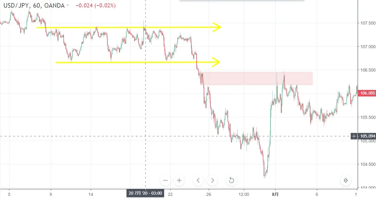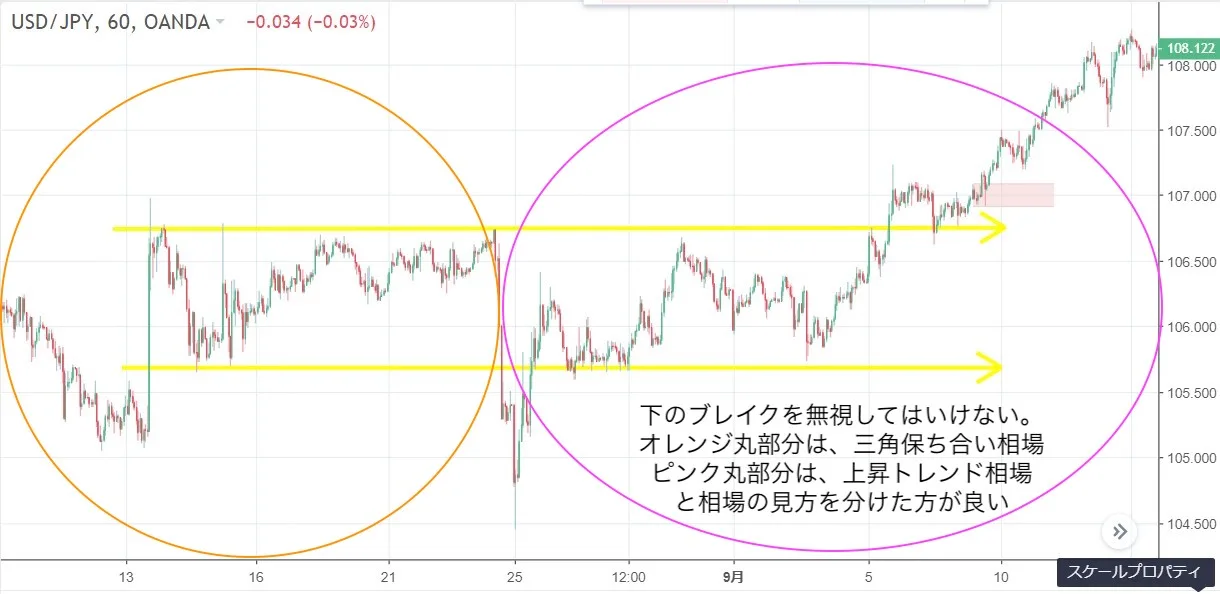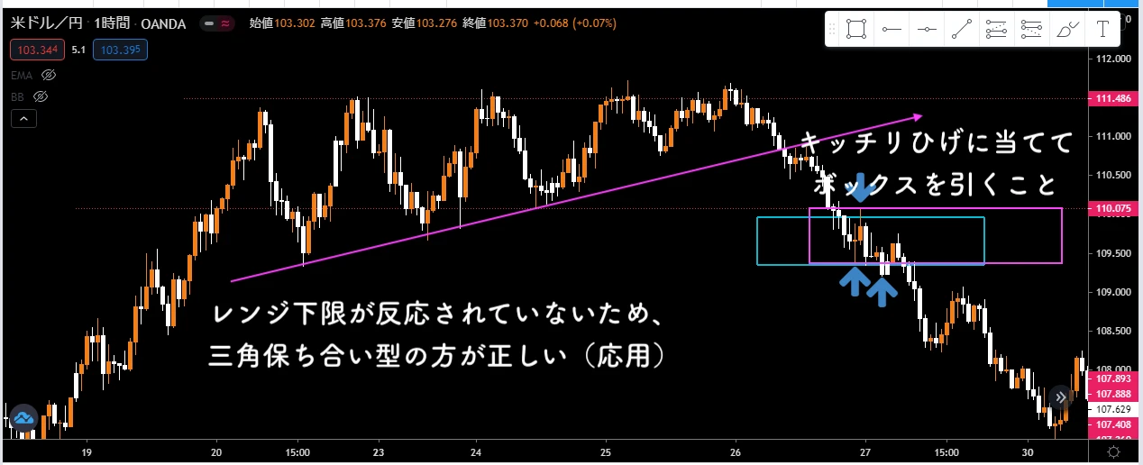 【上級】トレンドラインと水平線のレンジ(方向性がある三角保ち合い)