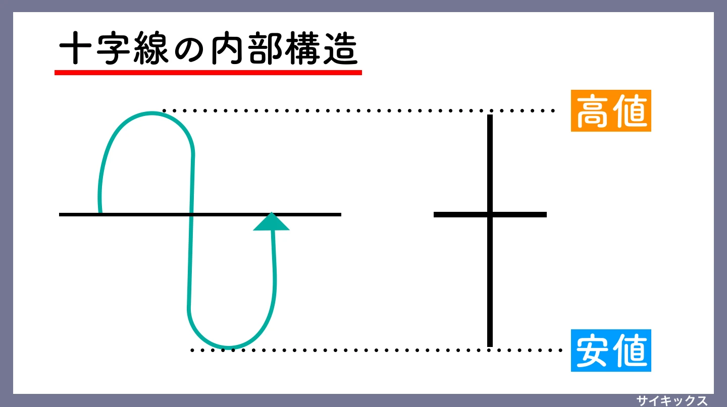同じ「十字線」という形でもプライスアクションによって意味が変わる。