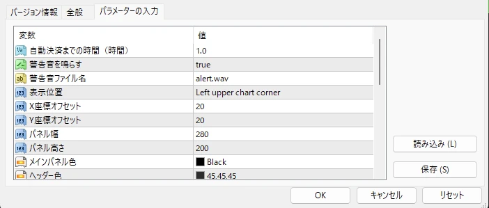 - アクティブ時テキスト...EAが起動している時の色を選べます