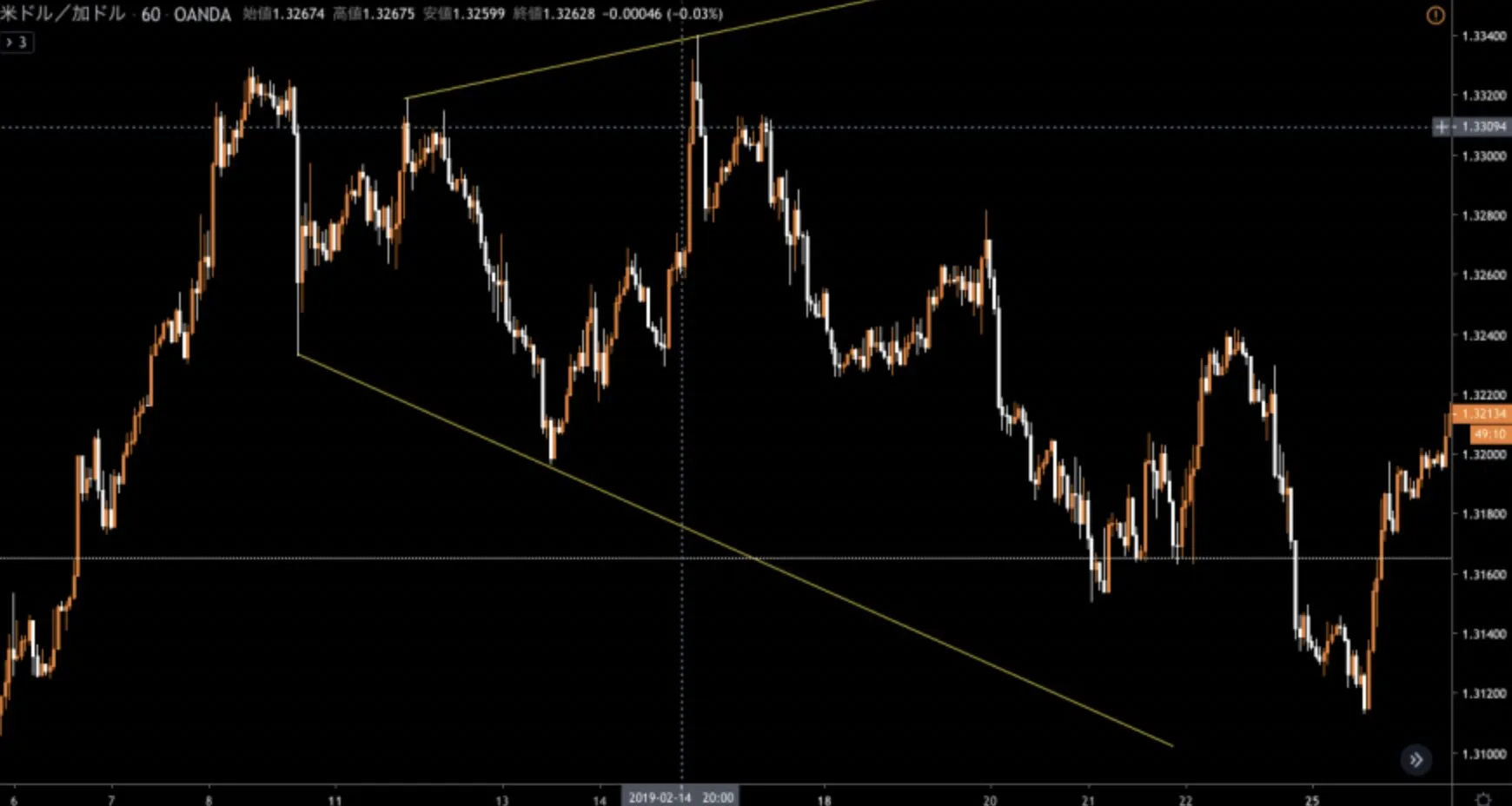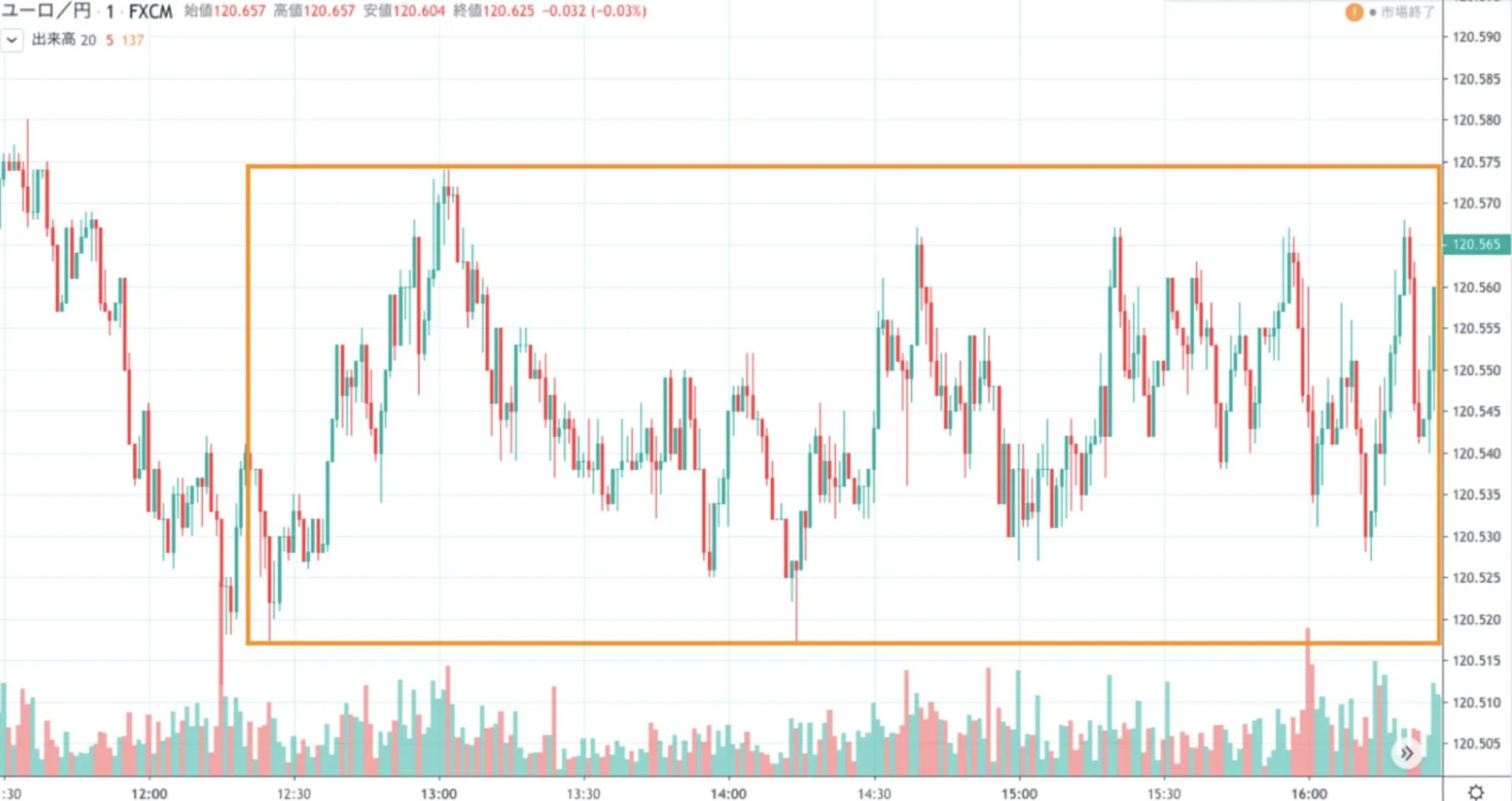 先ほどの画像の場合は「ボックスレンジ相場」となります。