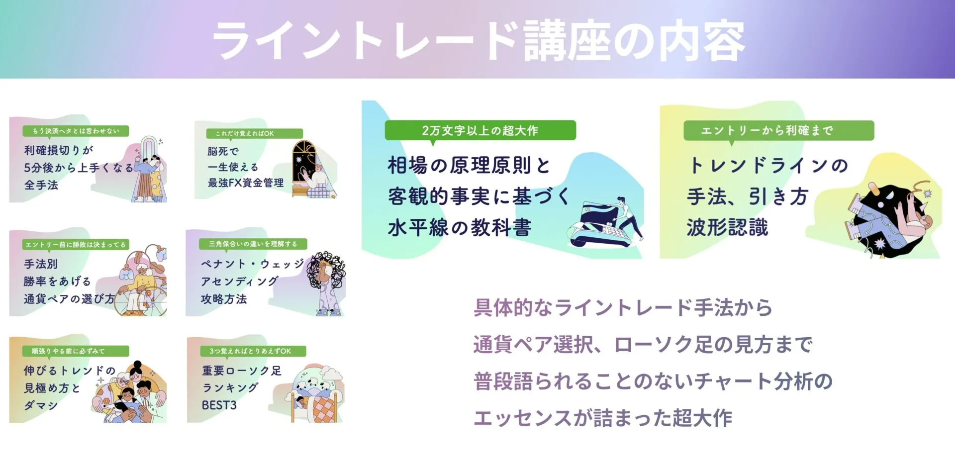 チャートを自分でみれるようになるために必要な情報を詰め込んだ「ライントレード講座」を完成させました。