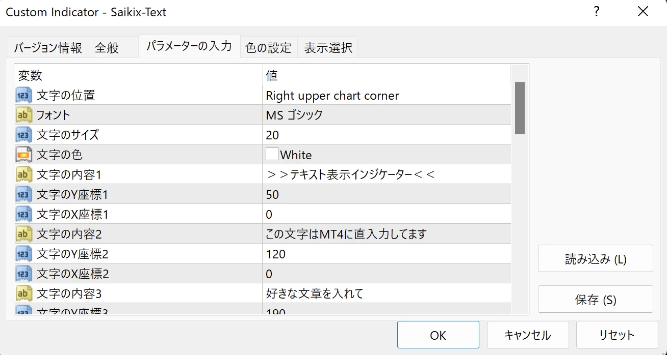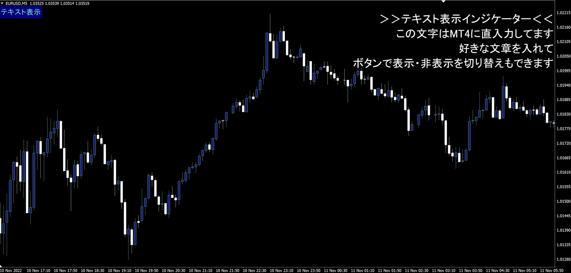 - 日本語表記で好きなテキストをMT4に書き込むことができる