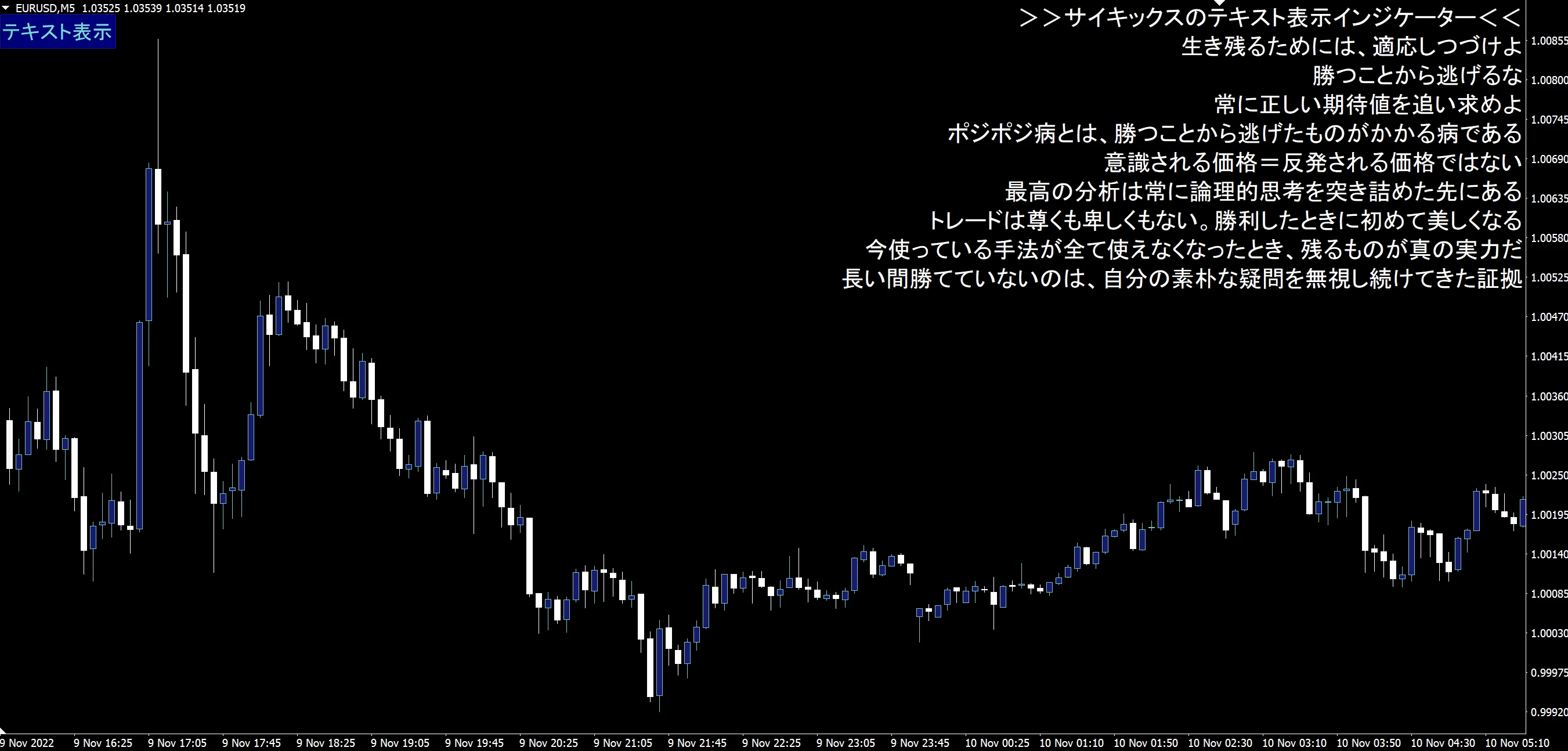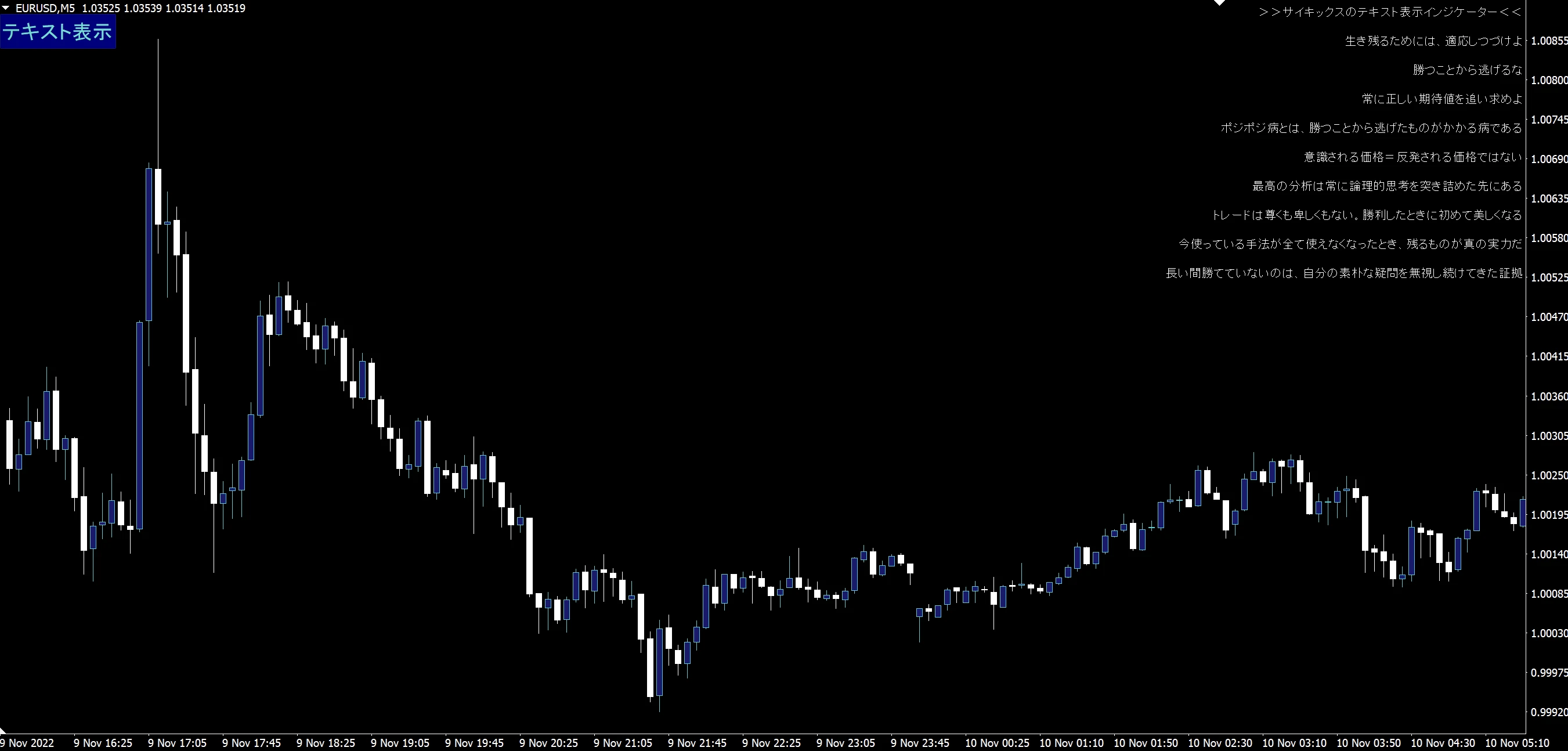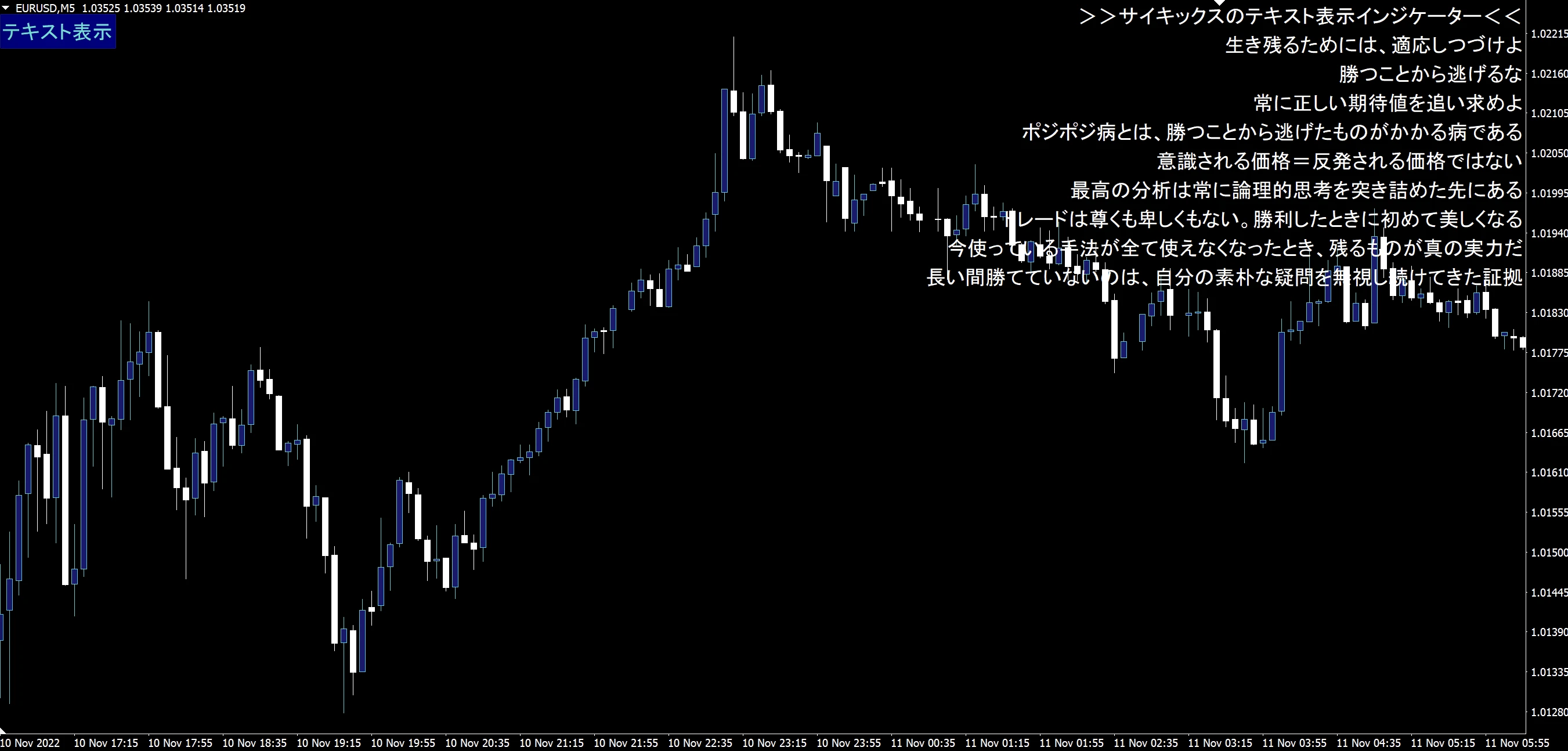日本語テキスト入力インジケーターを表示させたMT4チャート