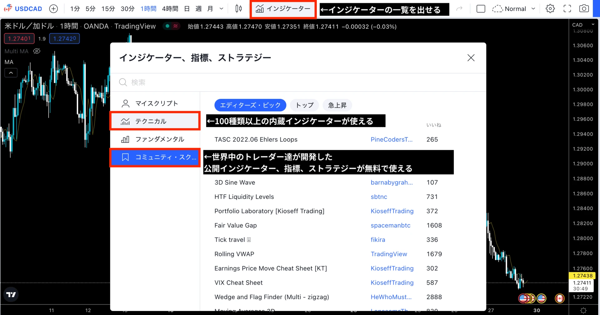 - 公開インジケーター:世界中のTrading Viewが独自に投稿し、一般公開しているインジケーター